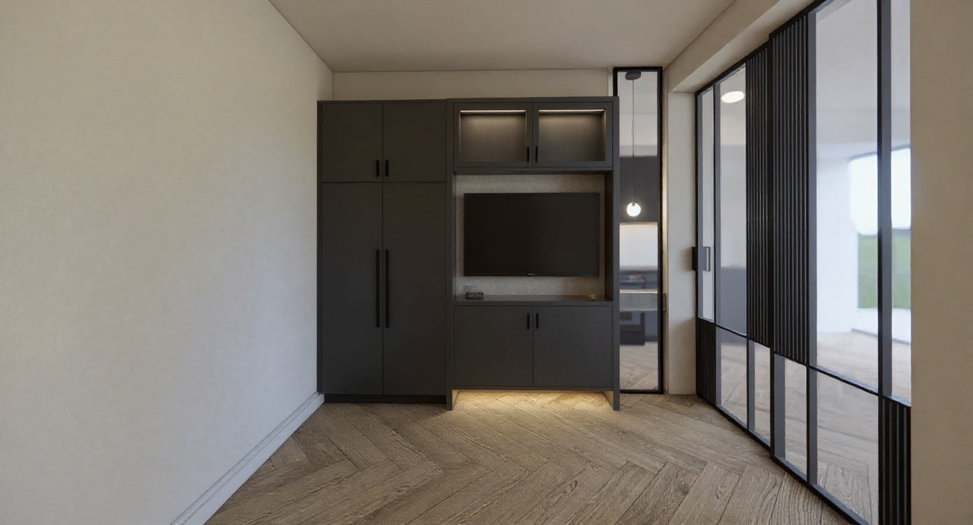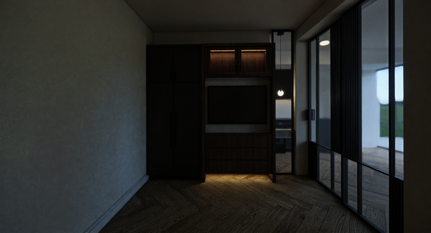 please make only the floors in my rendering a walnut keep everything else including lighting materials and colors exactly the same do not alter the design reflections or any other parts of the image