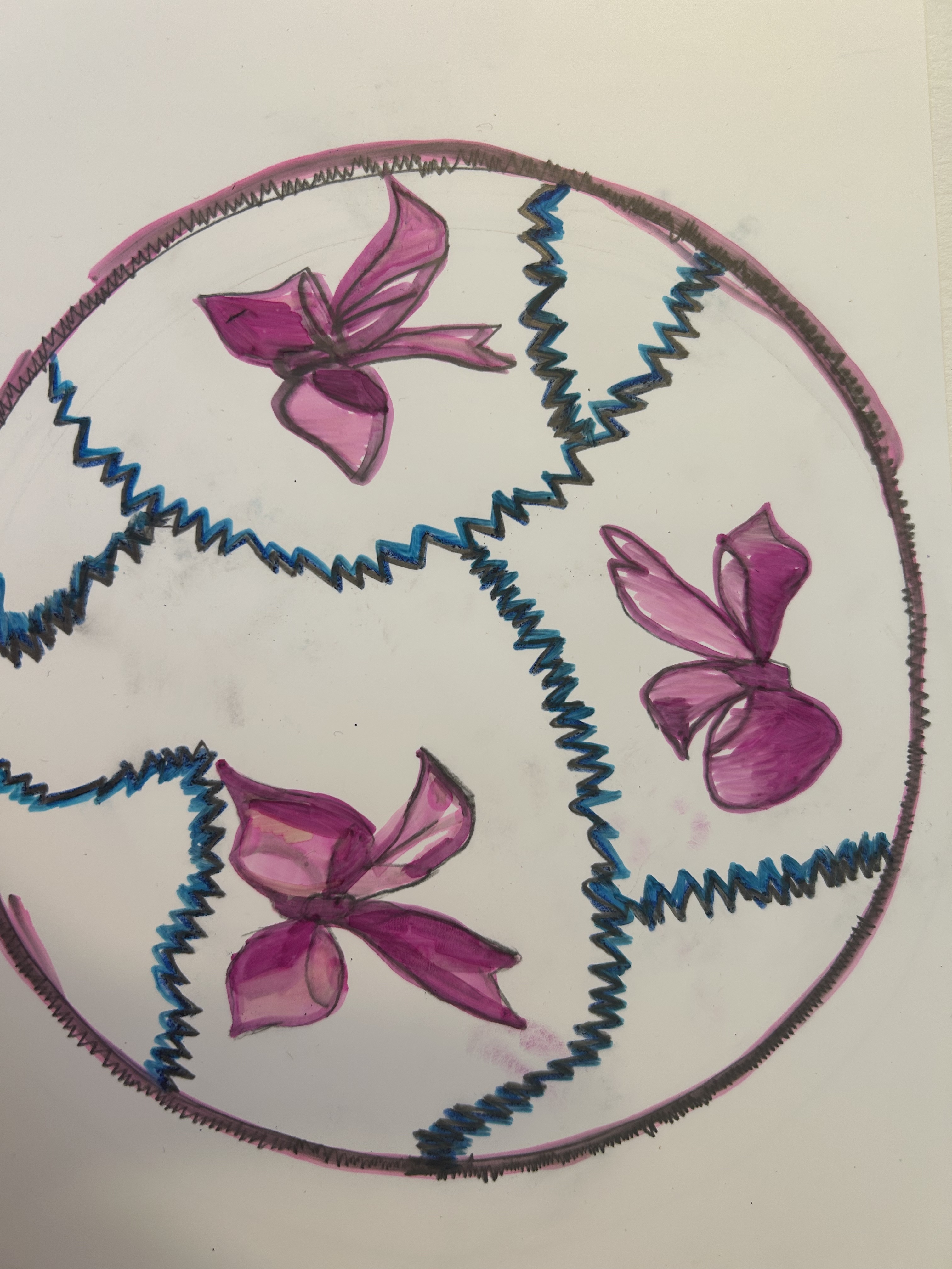 convert image in 12 round rug the pink ribbons on the rug to be made out of silk and raised slightly higher than the background
