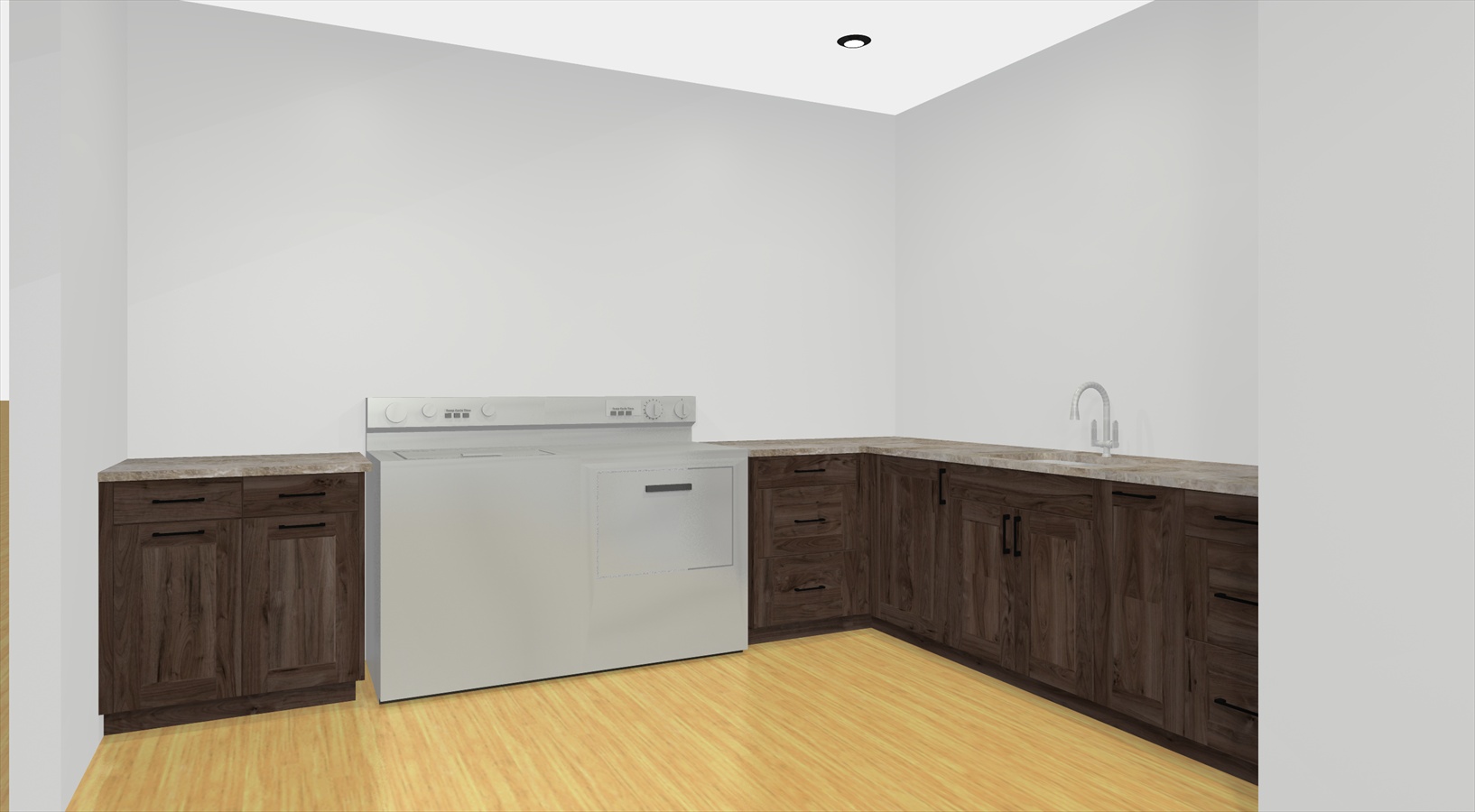 add upper cabinetry and cloths hanging rod with lite floating shelves