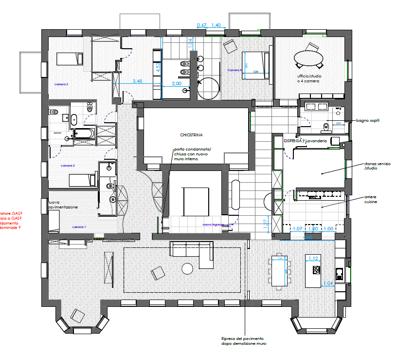 make this plan coloured with furnitures