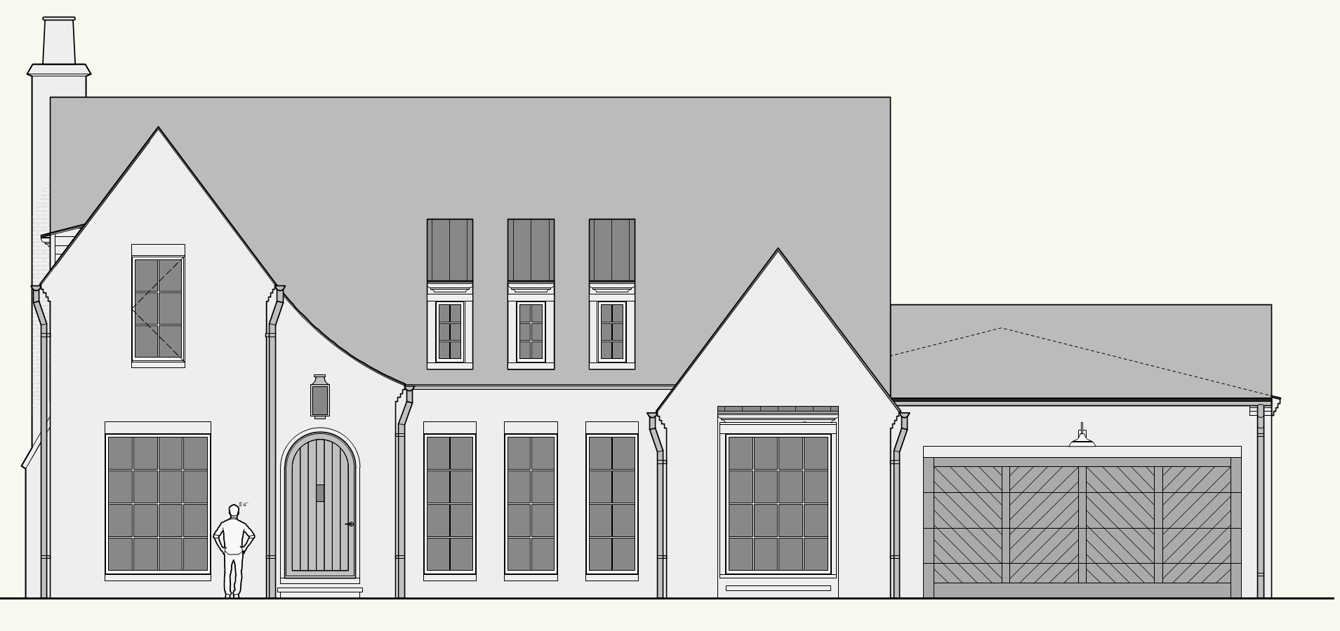 render the exterior elevation with the material palette colors and tones shown in the exterior phtograph in the references