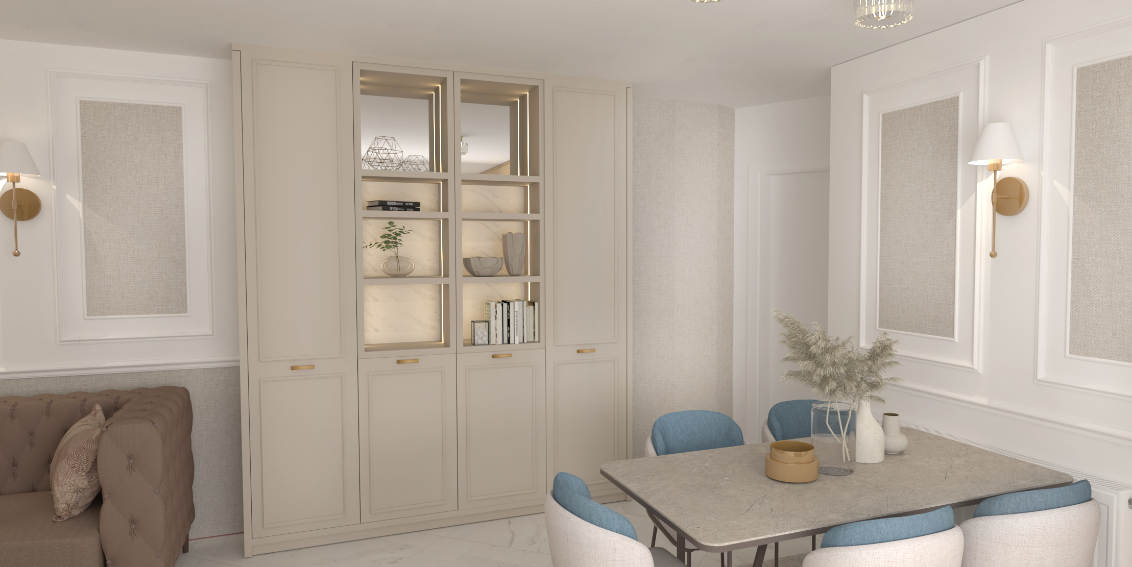 make a photorealistic image maintain colors do not add any new detail to the image wardrobe color angora beige egger sofa leather