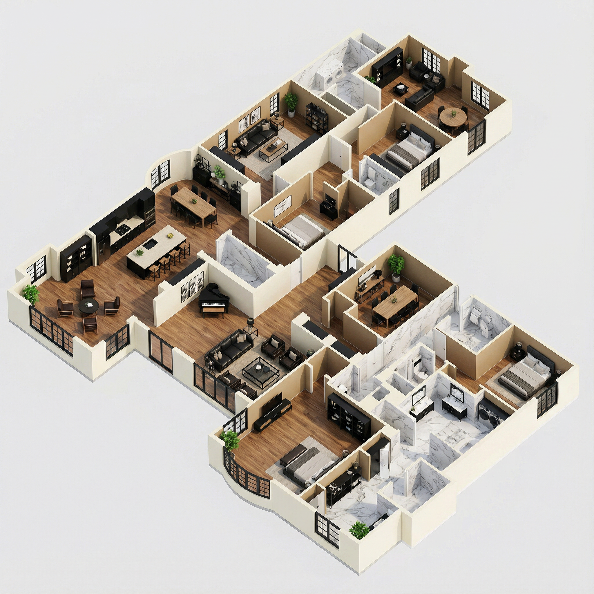 interior render a photorealistic 3d perspective of this house reference the current material style just enhance them rough sawn timber truss perlins t g ceiling stone walls keep model geometry the same windows doors roof walls make a lodgepole pine forest wintertime snow outside do not change the view only enhance the current materials and realistic montana vegetation snowy background detailed textures in the wood siding and glass reflections and a vibrant clear sky with light atmospheric depth render in hyper realistic architectural visualization quality 8k resolution windows dont see through the home metal roof light wood siding