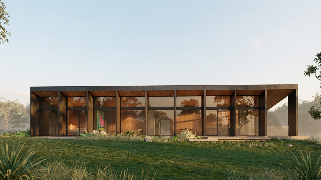 all fins to have a vertical black shogi ban timber on the inside faces the fascia above the fins to be a flat matte black metal clean up window reflections