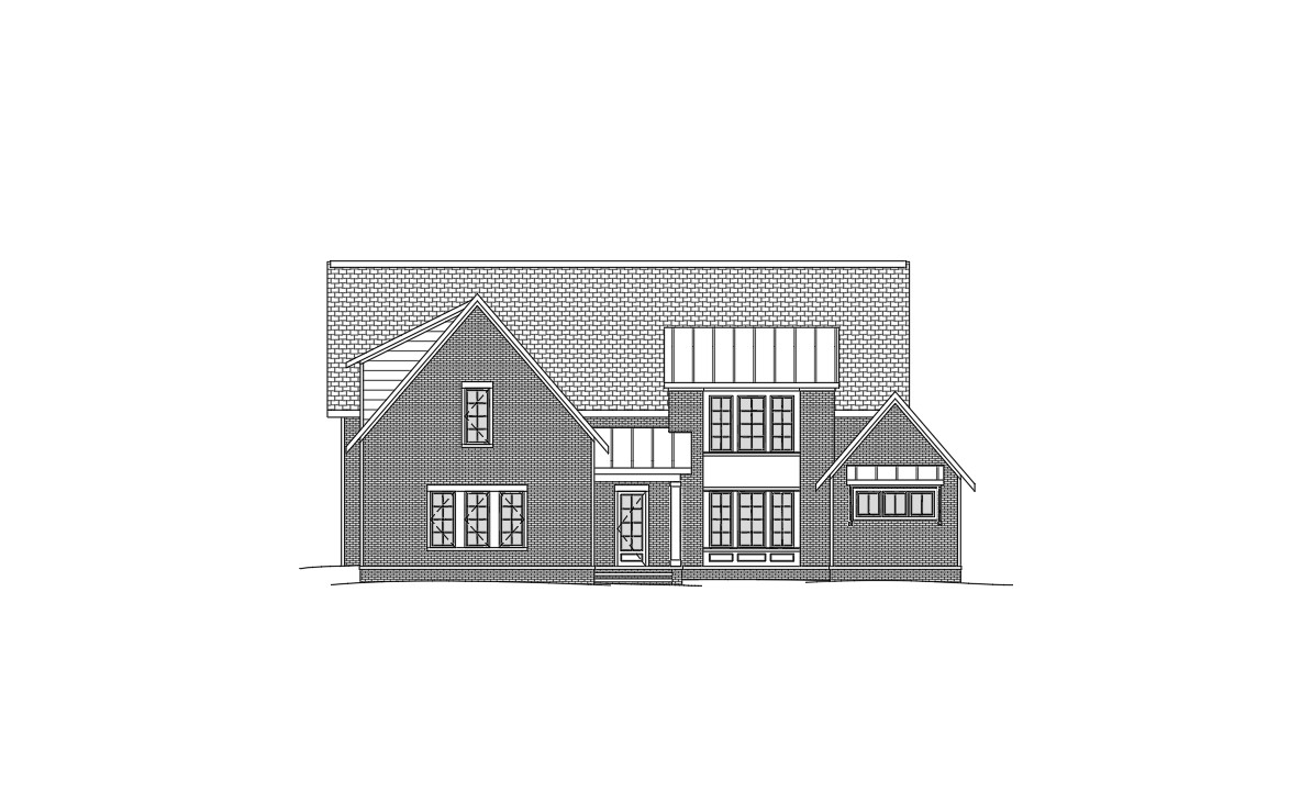 realistic wooded background painted white brick cloudy sky manicured lawn mirrored windows simple landscape