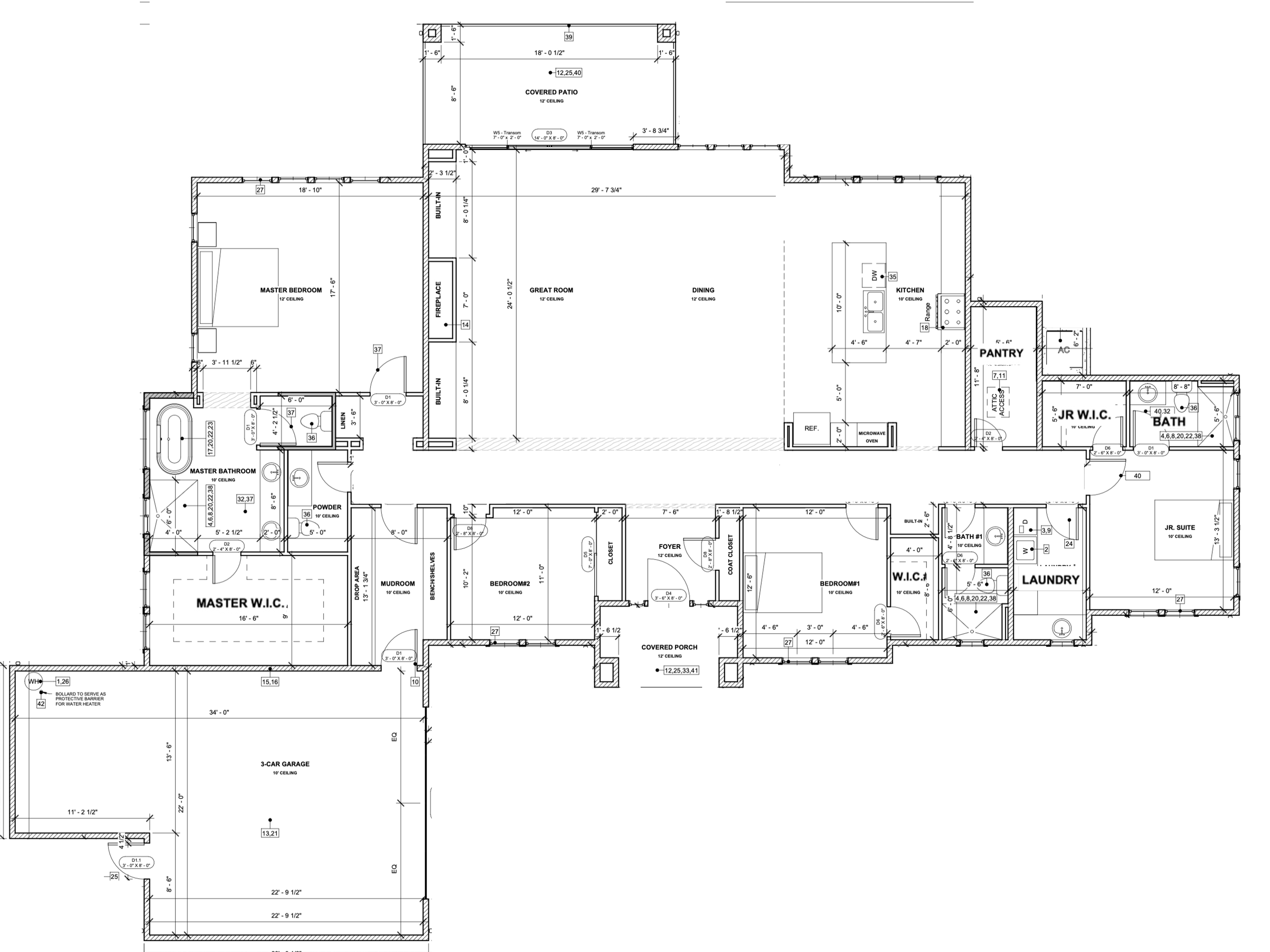 convert this floor plan into a realistic isometric 3d view of a full house show the space from an elevated angle with furniture walls and details visible make a contemporary render with light neutral color finishes and light neutral furniture use the same furniture as shows on the plan do not change the orientation of the floorplan