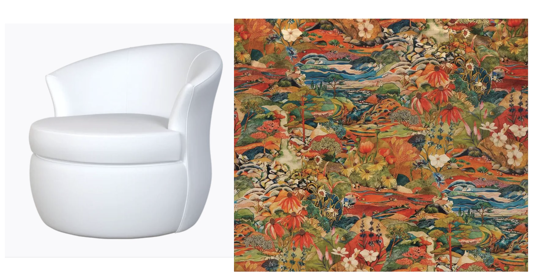 render a photorealistic image of the coley home the teacup swivel using the exact design and proportions shown in this reference https www coleyhome com collections swivels and gliders products teacup swivel chair apply the fabric from this source https www osborneandlittle com trebah velvet f7670 html swatch 9566 ensuring that the texture repeat weave and color are represented accurately and ensuring the upholstery shows realistic seams cushions soft shadows and subtle wrinkles where people would naturally sit use neutral lighting and a clean background so the chair and fabric are the focal points