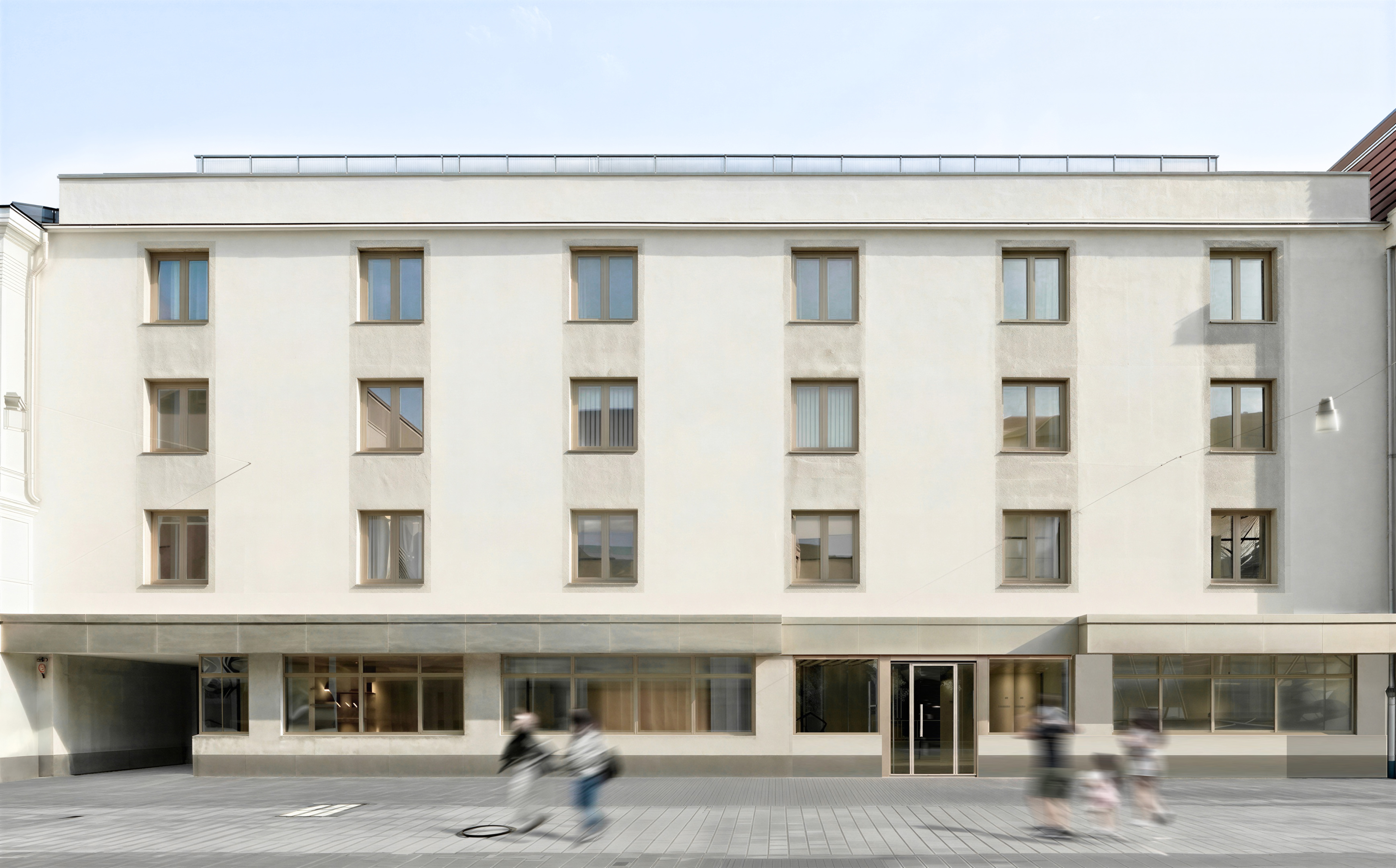 ransform this photoshop composite architectural rendering into an ultra photorealistic image with maximum realism strictly preserve all original materials textures and colors exactly as in the source image no reinterpretation no artistic changes ensure a precise 1 1 material match fix all compositing errors remove seams edge artifacts cutout traces perspective inconsistencies lighting mismatches and small facade smudges or glitches clean and unify all surfaces while keeping them physically believable the building should appear newly constructed clean sharp and flawless but still natural no over polishing or artificial plastic look use neutral realistic daylight overcast or soft diffused lighting avoid dramatic lighting golden hour tones or cinematic color grading colors should remain true to life and consistent with real world camera capture apply physically accurate lighting shadows reflections and global illumination ensure realistic glass behavior subtle reflections slight transparency where appropriate and correct material response roughness specularity depth add subtle photographic realism natural contrast slight lens imperfections very minimal realistic depth and fine surface detail without changing the design final result should be indistinguishable from a professional architectural photograph taken with a high end camera