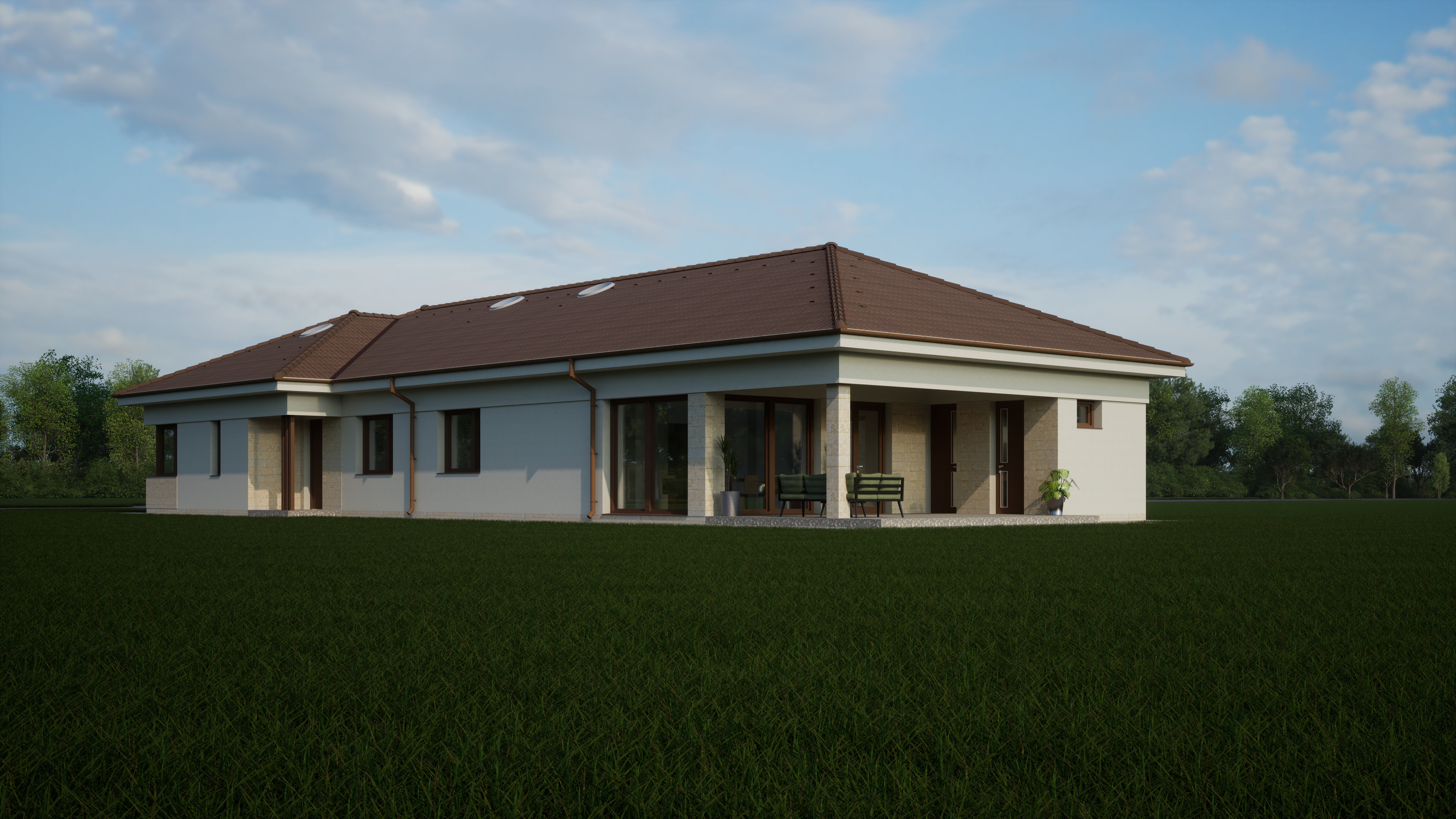 make the environment more realistic and lifelike while preserving the original composition and architectural elements enhance textures lighting shadows and natural details such as vegetation and ground surfaces for a believable atmosphere add a realistic cat sitting or lying naturally in the grass ensure correct scale perspective and lighting with soft accurate shadows so the cat blends seamlessly into the scene do not introduce any other significant changes