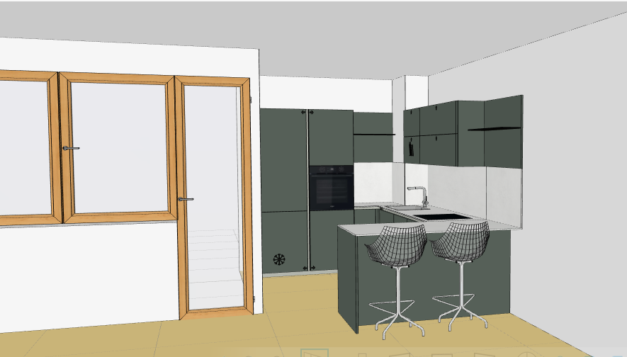 ultra photorealistic interior kitchen render based on the provided image preserve exactly the original layout proportions cabinetry volumes appliances position island size stools placement ceiling height and wall openings change the kitchen color palette as follows all base units tall units and island fronts in a warm corda tone light beige taupe matte lacquer finish soft and elegant plinths and integrated handles gola perfectly color matched with the corda cabinetry upper cabinets in light natural fluted wood cannettato vertical grooves realistic wood grain matte finish back of the peninsula in the same light fluted wood continuous and seamless maintain realistic materials accurate reflections natural shadows and soft global illumination neutral daylight lighting balanced exposure premium contemporary italian kitchen style no changes to furniture design no additional objects no decorative clutter high end interior photography look extremely realistic textures sharp details