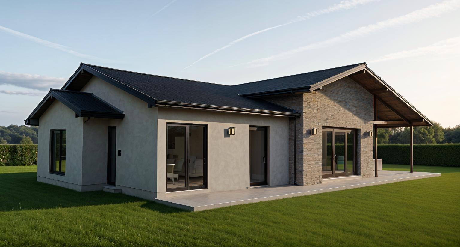 modernist exterior shot modern architecture grenn grass and trees in background architecture