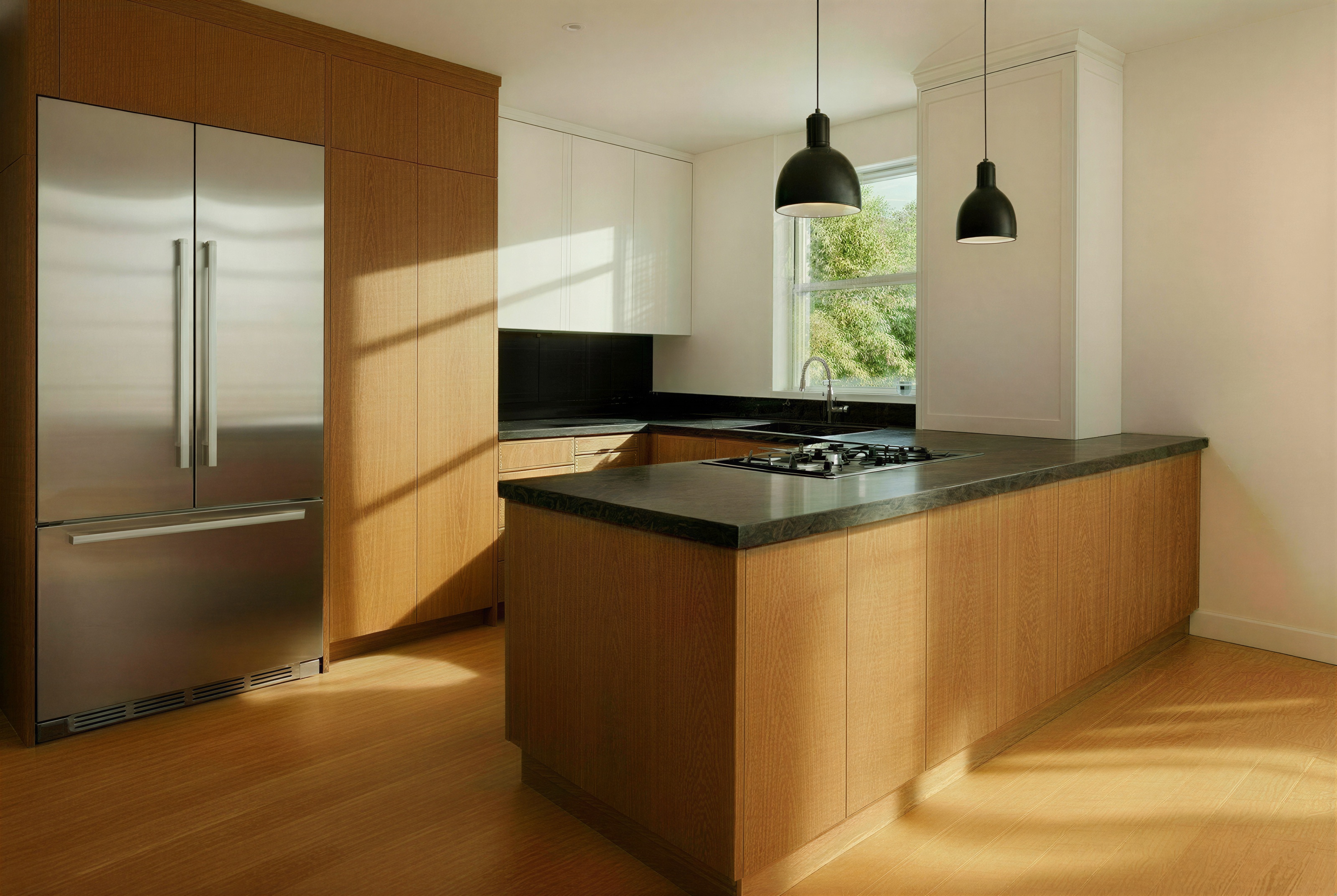 remove the white cabinet sitting on the countertop and leave everything else intact
