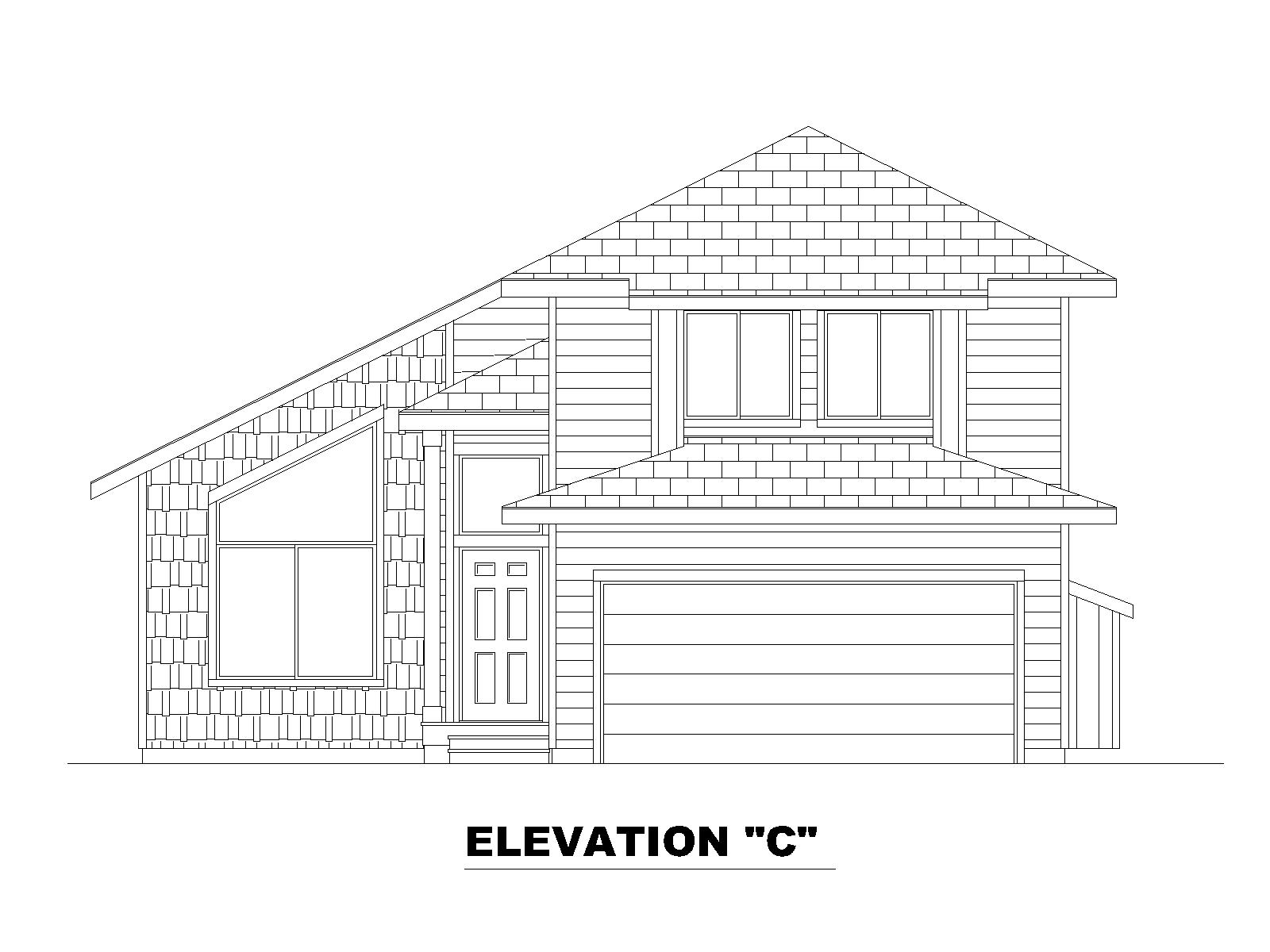 grainy watercolor render of classic styled home with blue paint include trees and mountainous alaska environment in the background simple driveway and walkways in front of the home