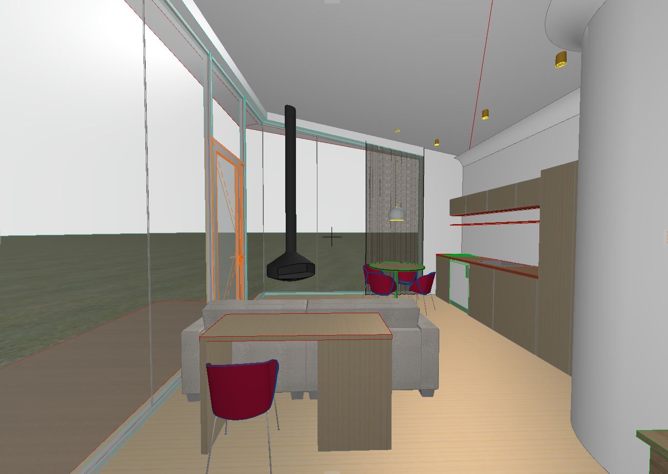 interior design for a a luxury modular house retreat with organic and wavy shaped walls on the left corner there is a suspended fireplace with fire inside the fireplace has a black metallic finish with semi matte finish the floor is made from hardwood floor natural tone with cracks and wear areas to look more realistically in the close up there is a couch that has natural earthy tones there is a natural linen carpet under the couch area on the right there is a kitchen in back the kitchen has natural wood finish cabinets with led light that have warm light and soft shadows between the suspended and the fire place there is a round dining table with 4 chairs the table and chairs are made from natural materials all the interior walls are cladded with a bumpy textured surface that look like santorini white walls there are multiple interior lights that set a calm and relaxing tone and also decorative objects to make the place look more relaxing and realistic the suspended lights above the dining table has a wicker lamp shade on the ceiling there are multiple spotlights that cast warm lights and their shadows touch the walls and give a dramatic effect the sunlight comes in from the large left window and has warm light and soft shadows outside the window you can see greenery outside with a hill side backgroundand blue sky and a few white clouds the ceiling has the same texture as the walls there is no wall to the right of the room the fireplace is light up format picture 16 9 extradetailed and ultrarealistic interior all elements have sharp details