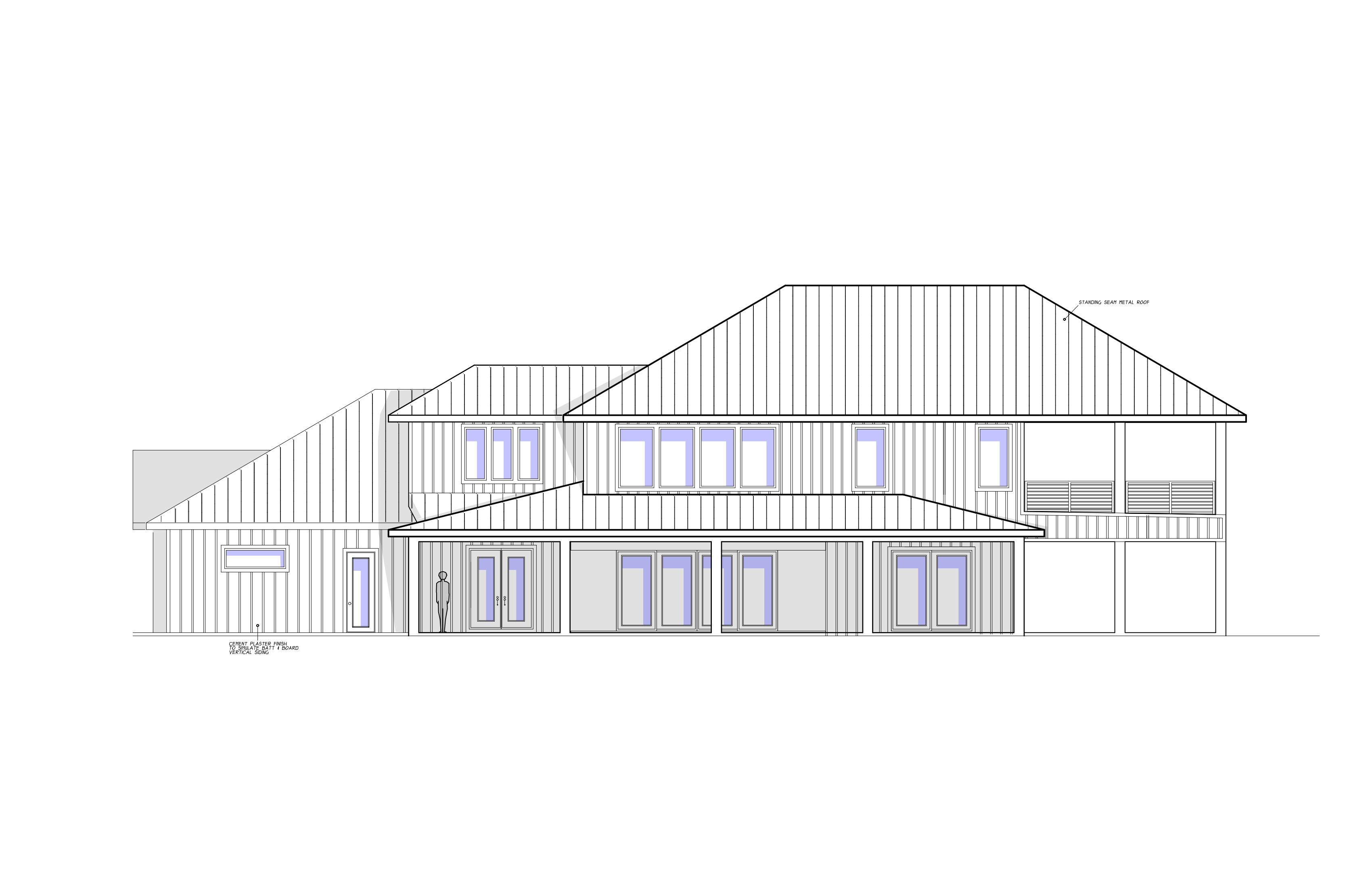 silver standing seam metal roof dark brown vertical batt and board wall siding light brown paver driveway pine trees grass yard