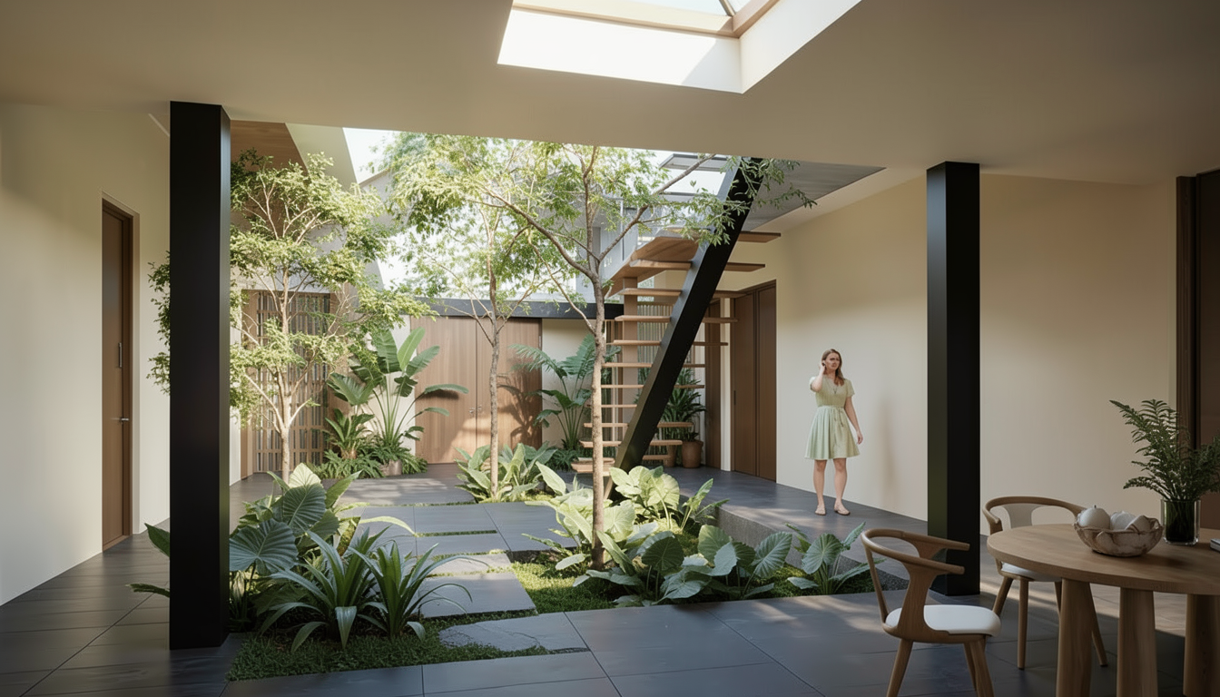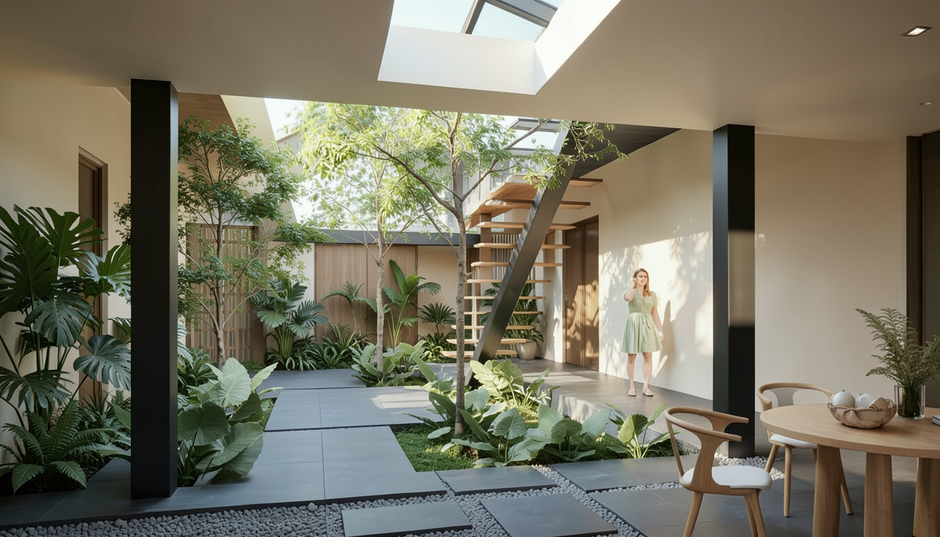 make the railing and horizontal spindles a thick dark bronze metal