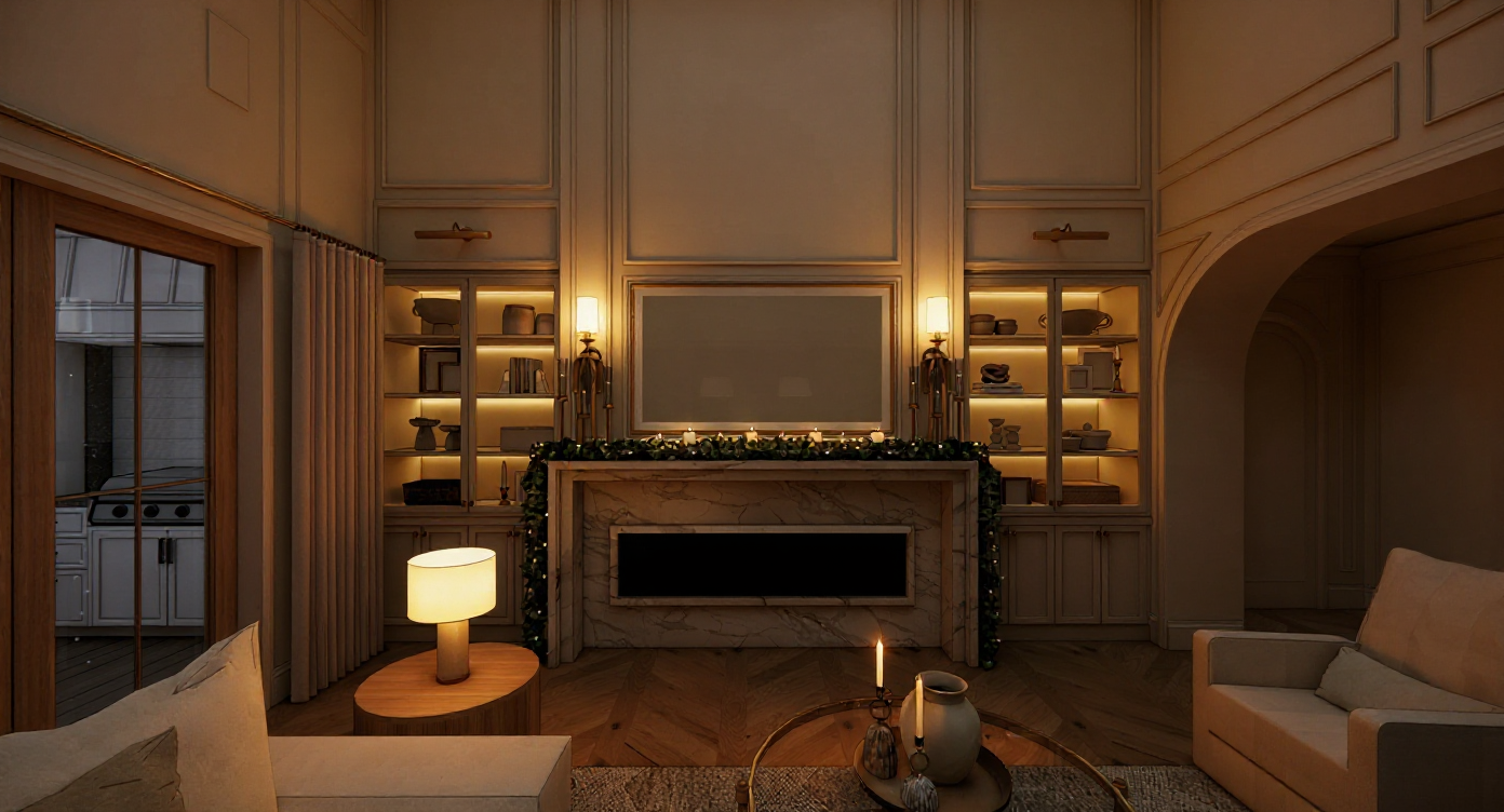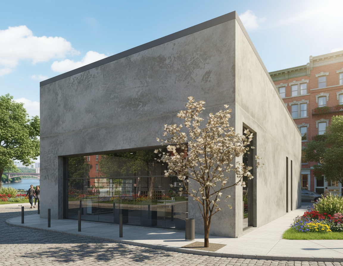 marble floor and walls lacquered black door with brass handle with fluted glass
