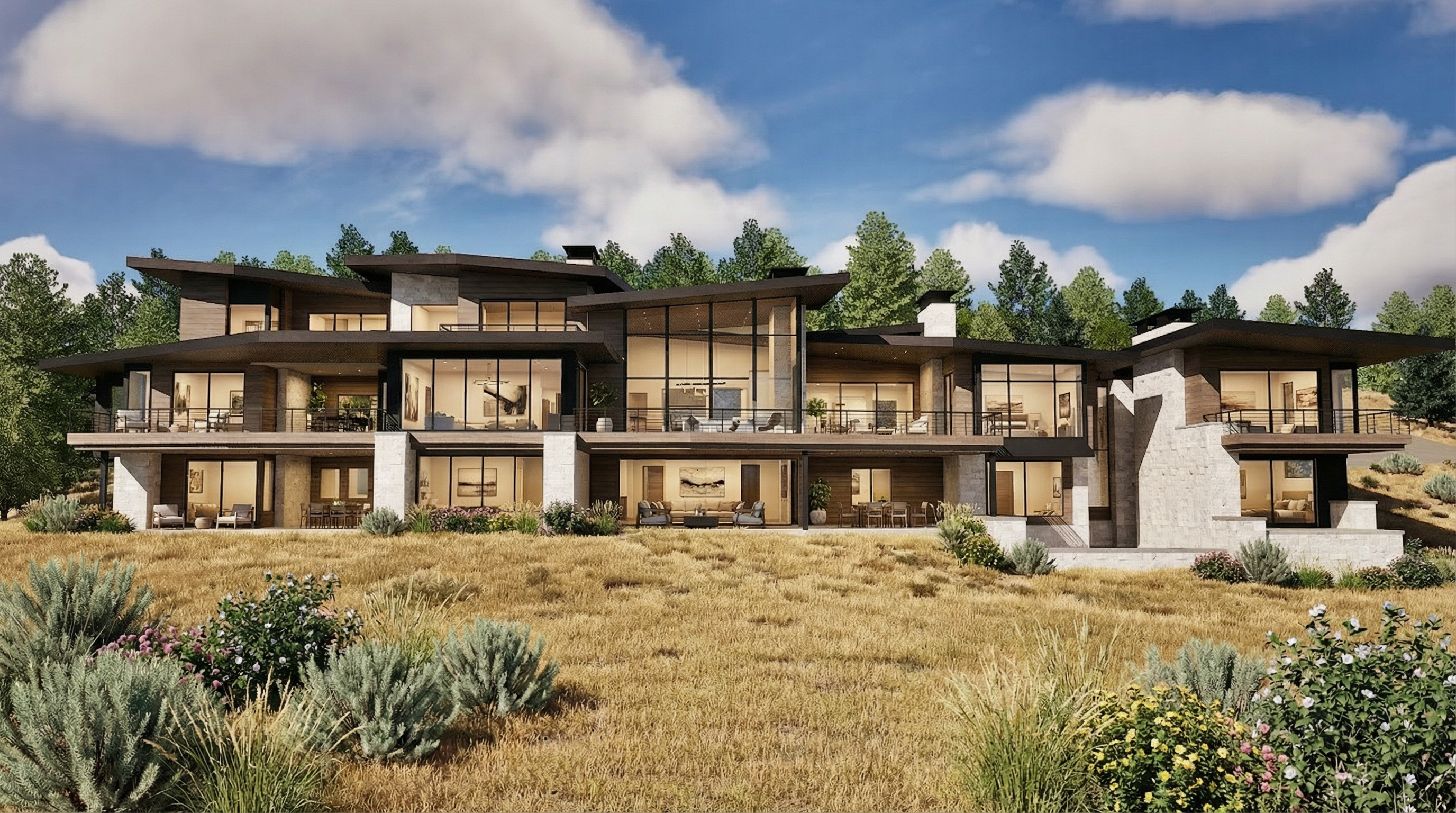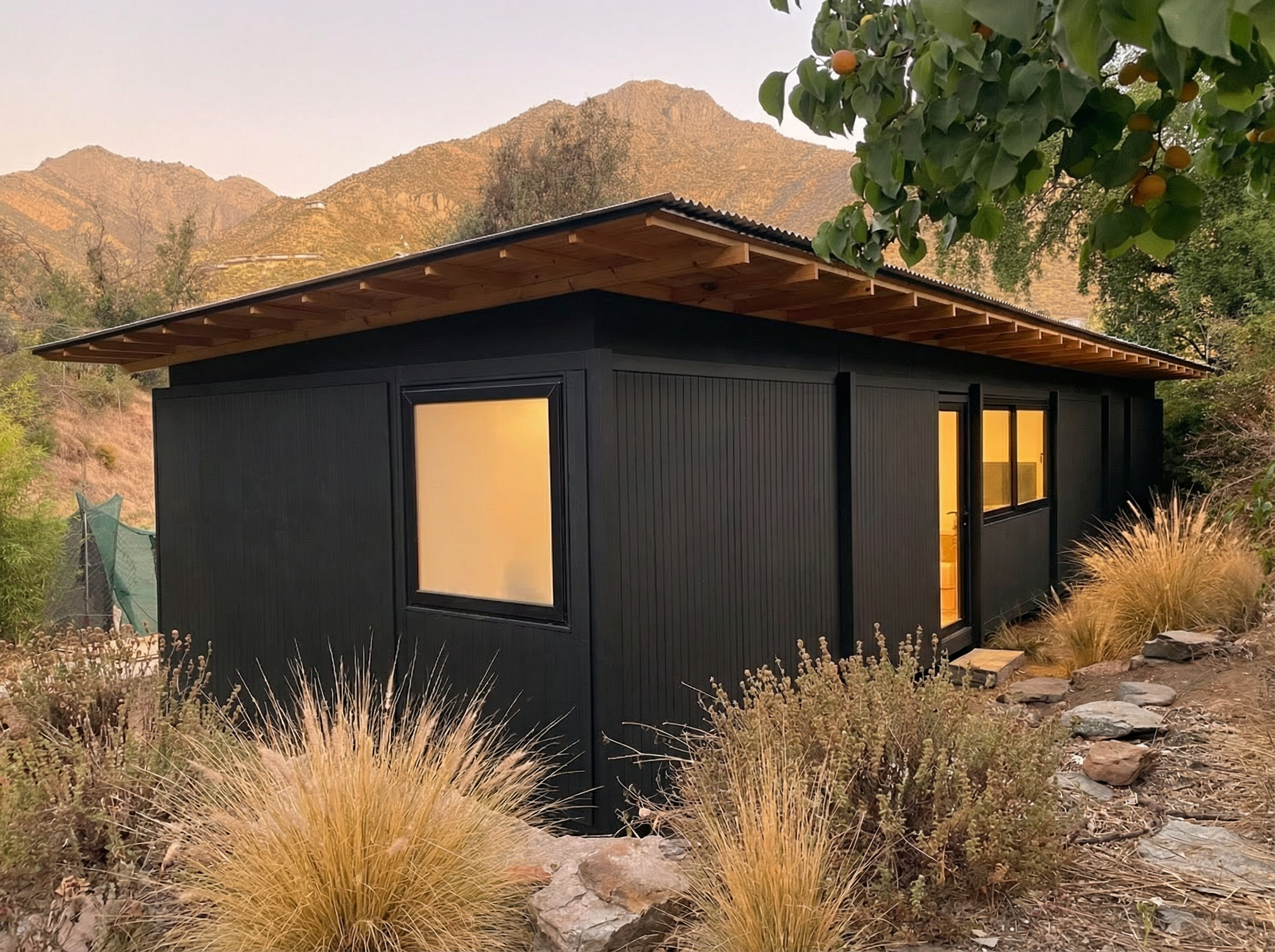 the building is in an urban arts district place a few cars in the front parking lot sun should illuminate the entire front of the building keep cmu block dark grey painted no background building