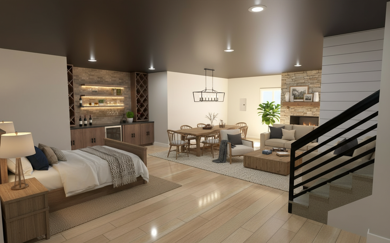 a manicured lawn layered flower beds low maintenance shrubs native plants stone pathway leading to the entrance