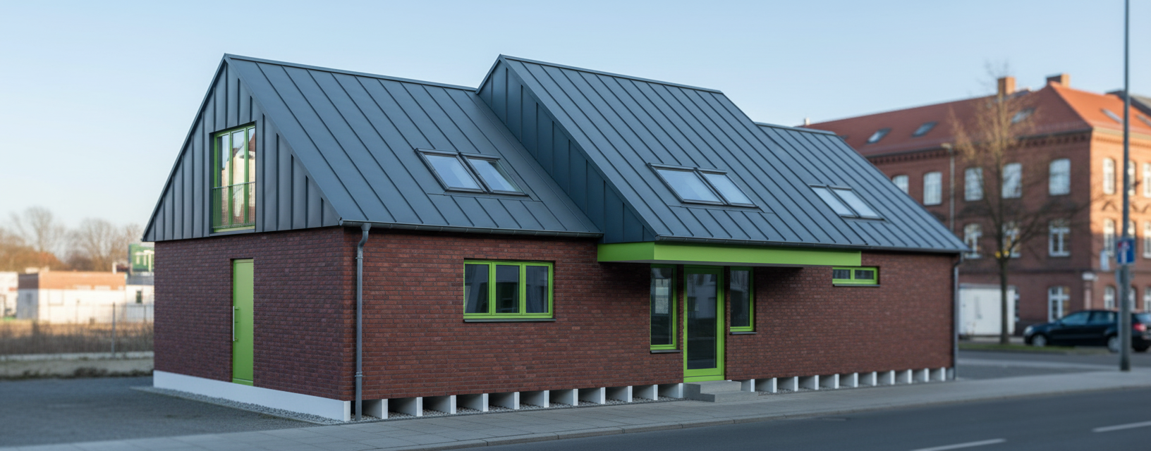 transform this google street view image into a high quality architectural render preserve all existing buildings exactly as they are in real life do not modify facades materials proportions or colors maintain original urban context including utility poles overhead wiring sidewalks signage and vegetation remove all vehicles cars trucks motorcycles and any transient objects or people from the scene improve lighting and textures to achieve a realistic professional architectural visualization style with soft natural daylight and balanced shadows replace the existing street with a newly proposed pavement design clean uniform surface well defined edges add new sidewalks with a height of 15 cm above street level and include a simple square curb guarnici n cuadrada continuous along both sides keep the perspective identical to the original street view camera do not stylize or over design aim for a realistic built project look as if the street has already been constructed remove any visual artifacts from the original capture blurring stitching errors distortions so it no longer looks like a google image