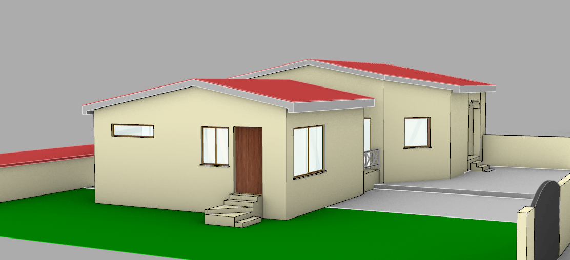 render fotorealistico di una villa a pomezia basamento in pietra scale in travertino intonaco giallo parte grigia in pietra e il resto erba materiali e luci realistiche