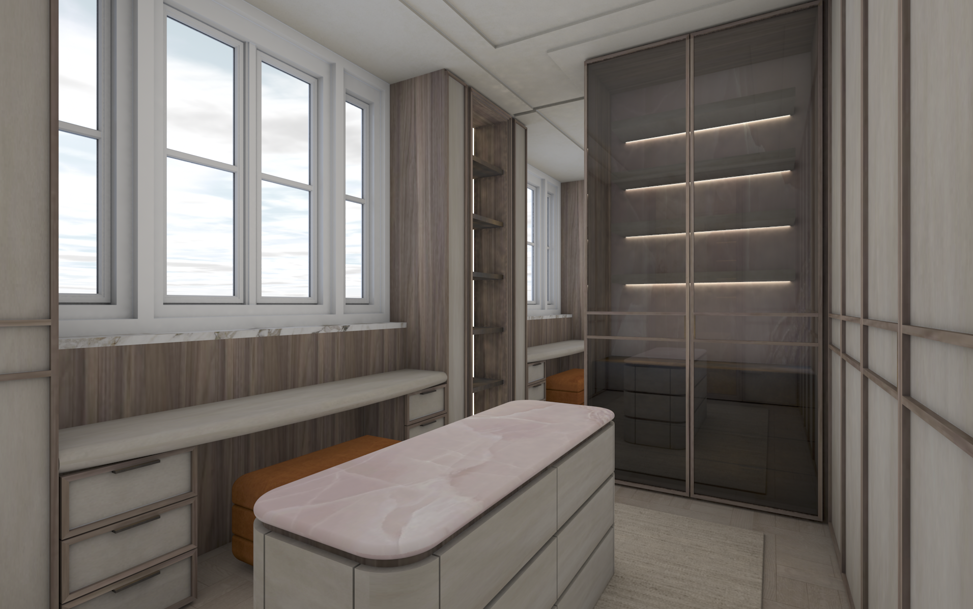 make carpet a bit fluffy place some designer bags on the shefs in the cabinet