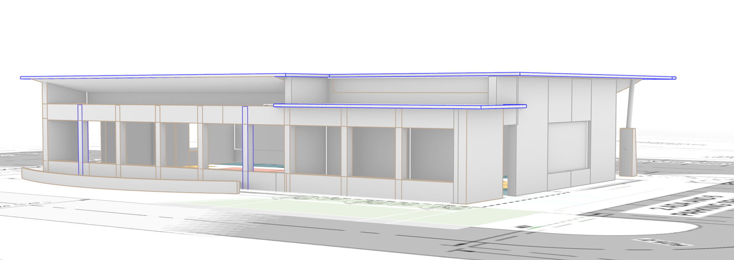 add high and stone wall expose wooden false celing glass on opening sidewalk aroumf building add mountaine stone