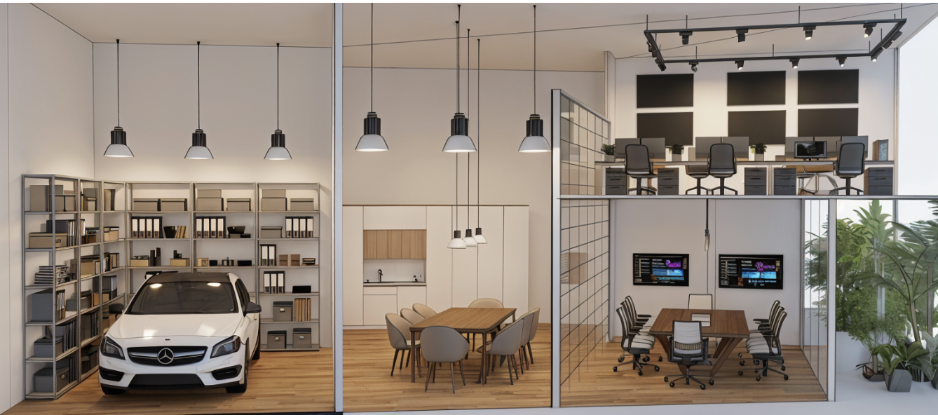 turn tvs on the upper level add 3d acoustical panels on ceiling add ottomans near dining table garden outside
