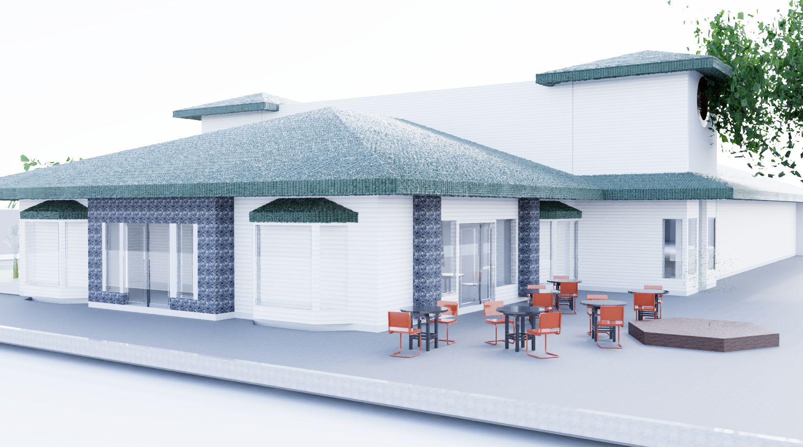 add people in caffe add restaurant advertisement to the windows no plants on the roof