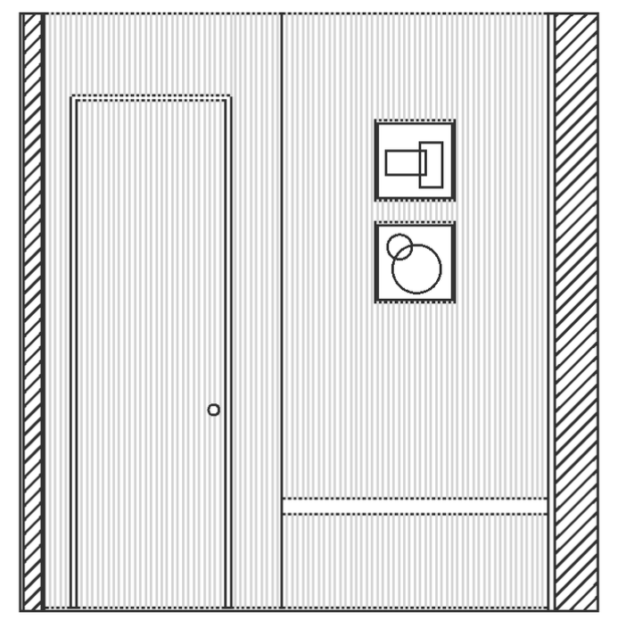 render this elevation of a foyer entry for a european modern coastal house the walls are light oak wood and fluted there is a hidden door that is also fluted the bench has a deep green suede cushion on top have the lighting be bright daytime and make as realistic as possible