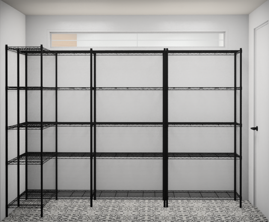 recessed lights only in the ceiling put things on shelves related to storge room in basement