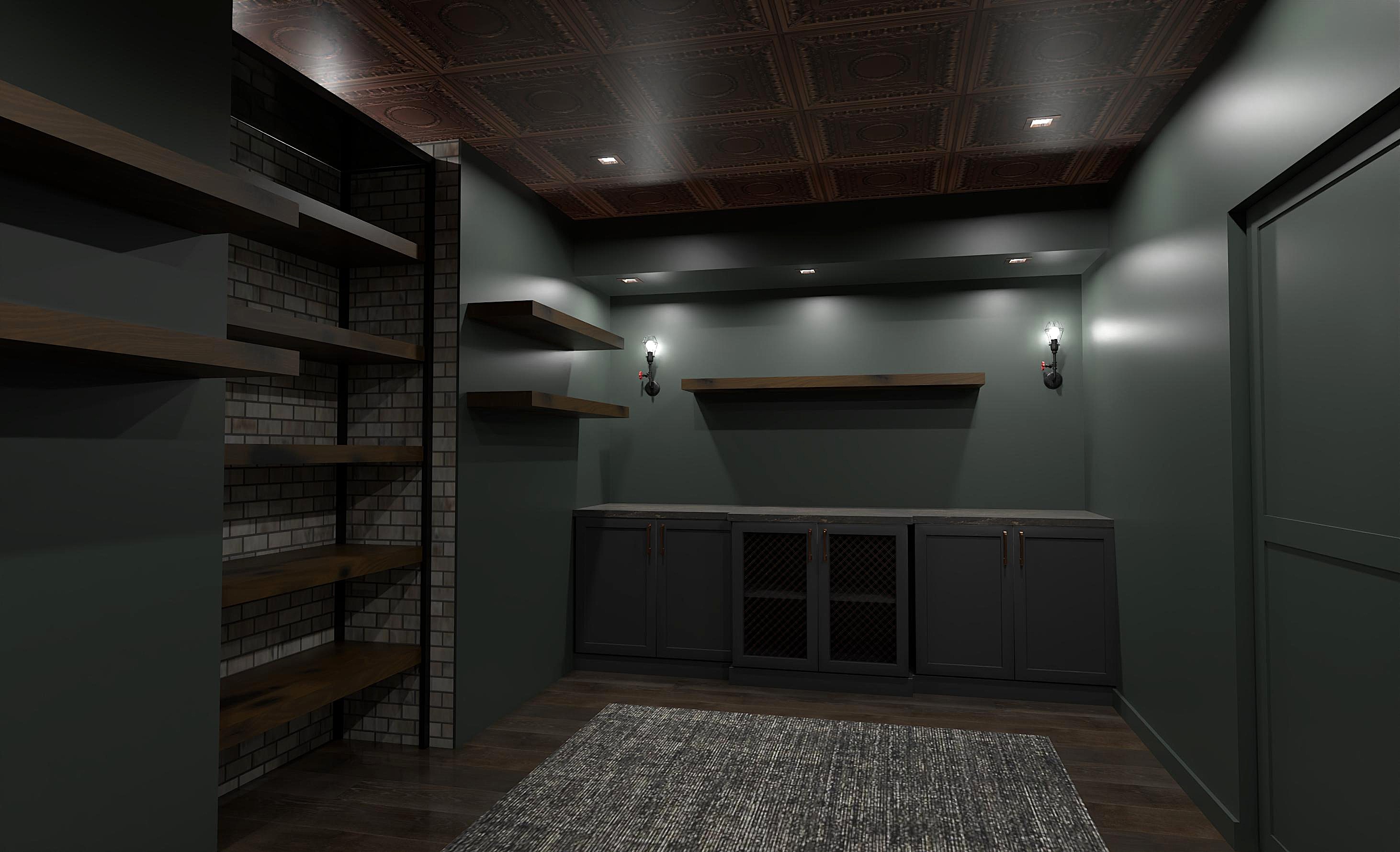 dark moody bourbon room shelves to have alcohol black leather chairs with small table 1920 s feel floor lamps for lighting