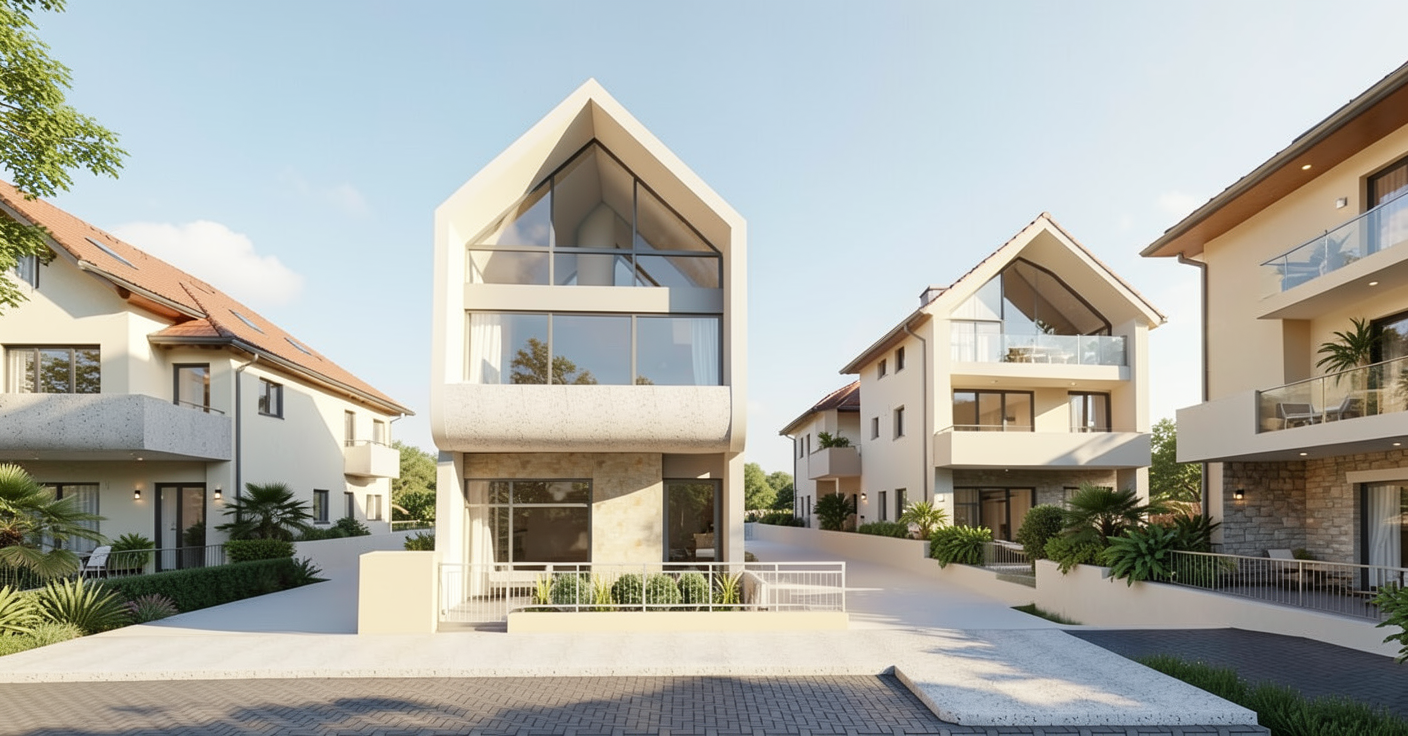 sunny afternoon tall homes butting up against each other