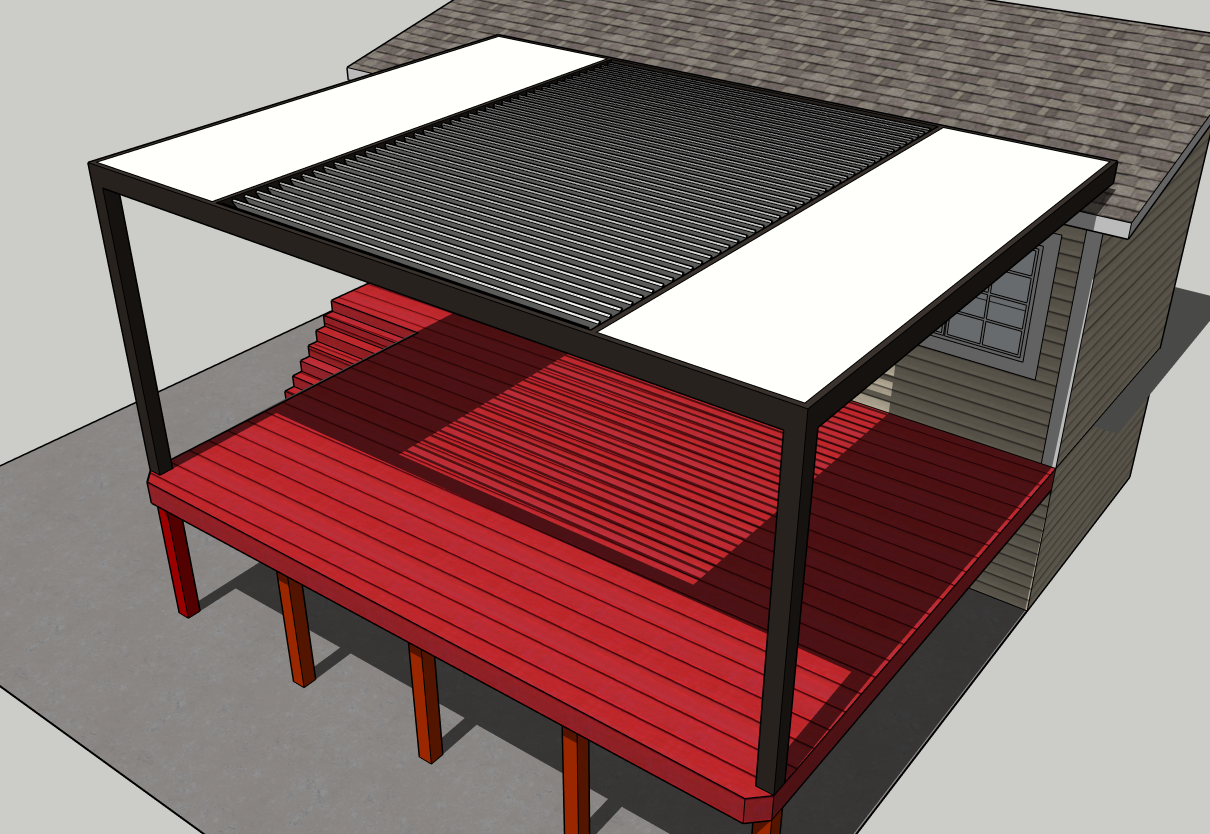 make this more realistic and the pergola to be an aluminum framed and the center slats are a aluminum l louvered roof