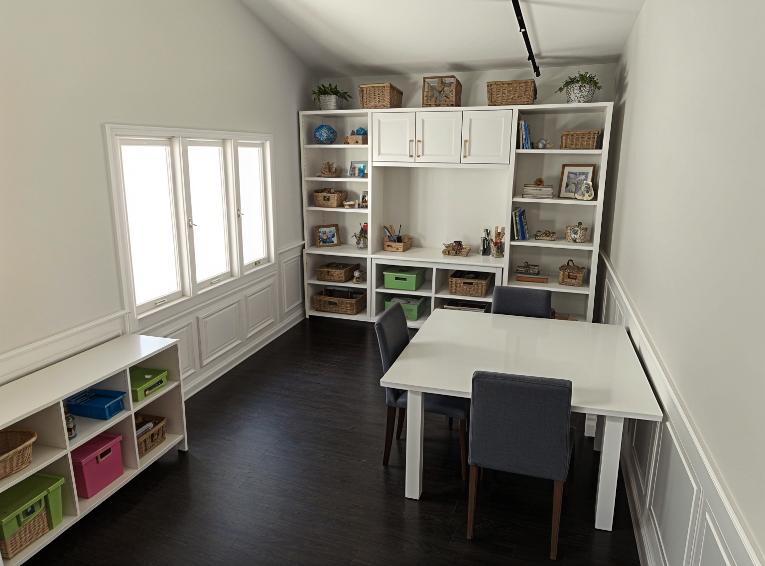 barndominium exterior shot furniture and home accessories showroom colorful and artist design many small partitions each partition for only 1 supplier rugs partition artwork partition lighting partition furniture partition wall textures add artistique partitions to separate every supplier black ceiling grey floor architecture