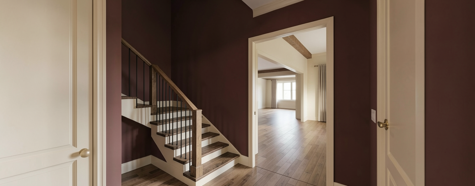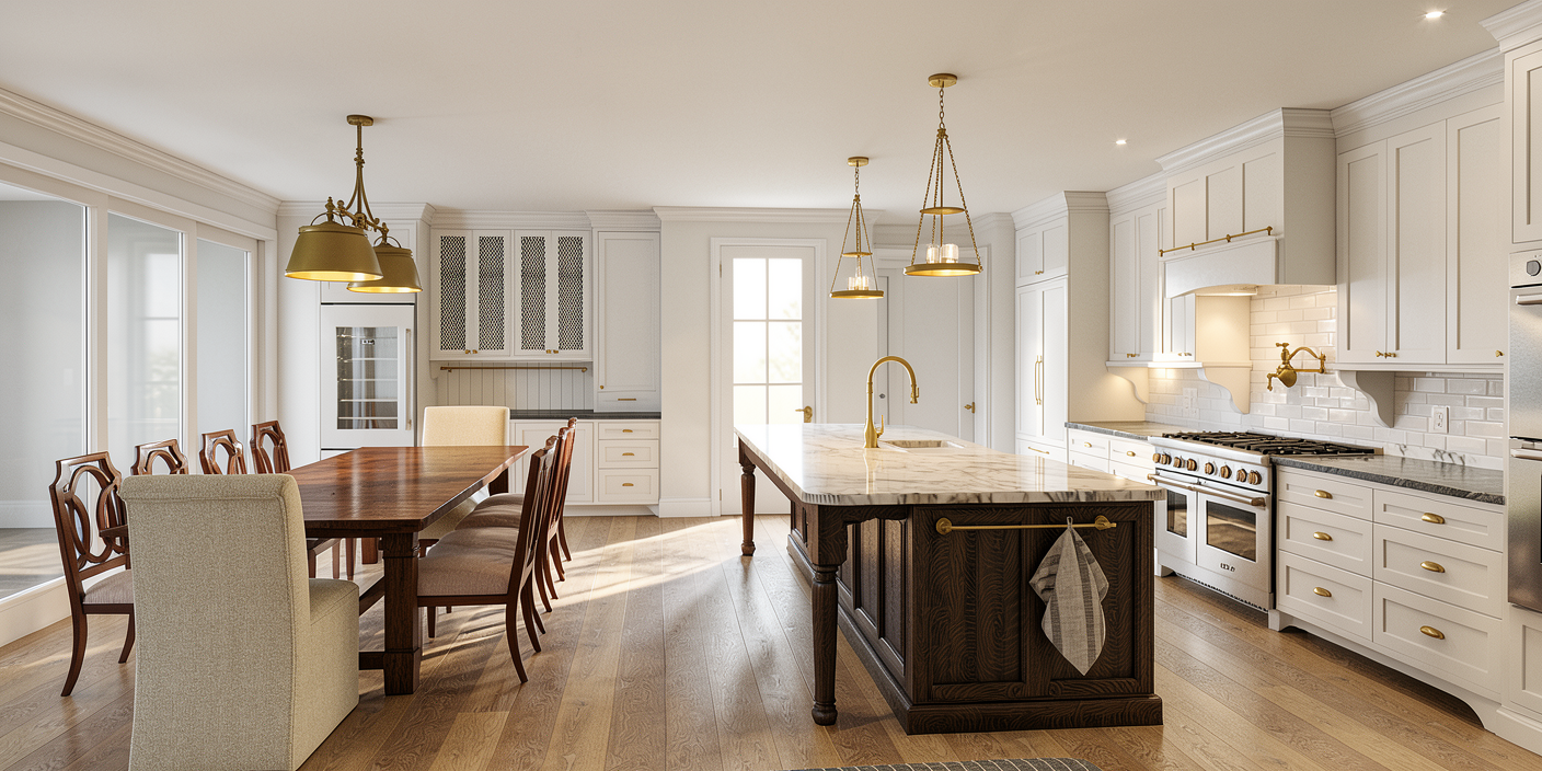 enhanced interior lighting undermount sink set into countertop in the bottom left with a brass faucet mirror above the sink and faucet small opaque white spherical sconce on either side of the mirror with brass backplate white oak cabinetry countertop is white quartz brass shower controls and showerhead beyond glass on back wall of shower medium brown natural wood door and trim