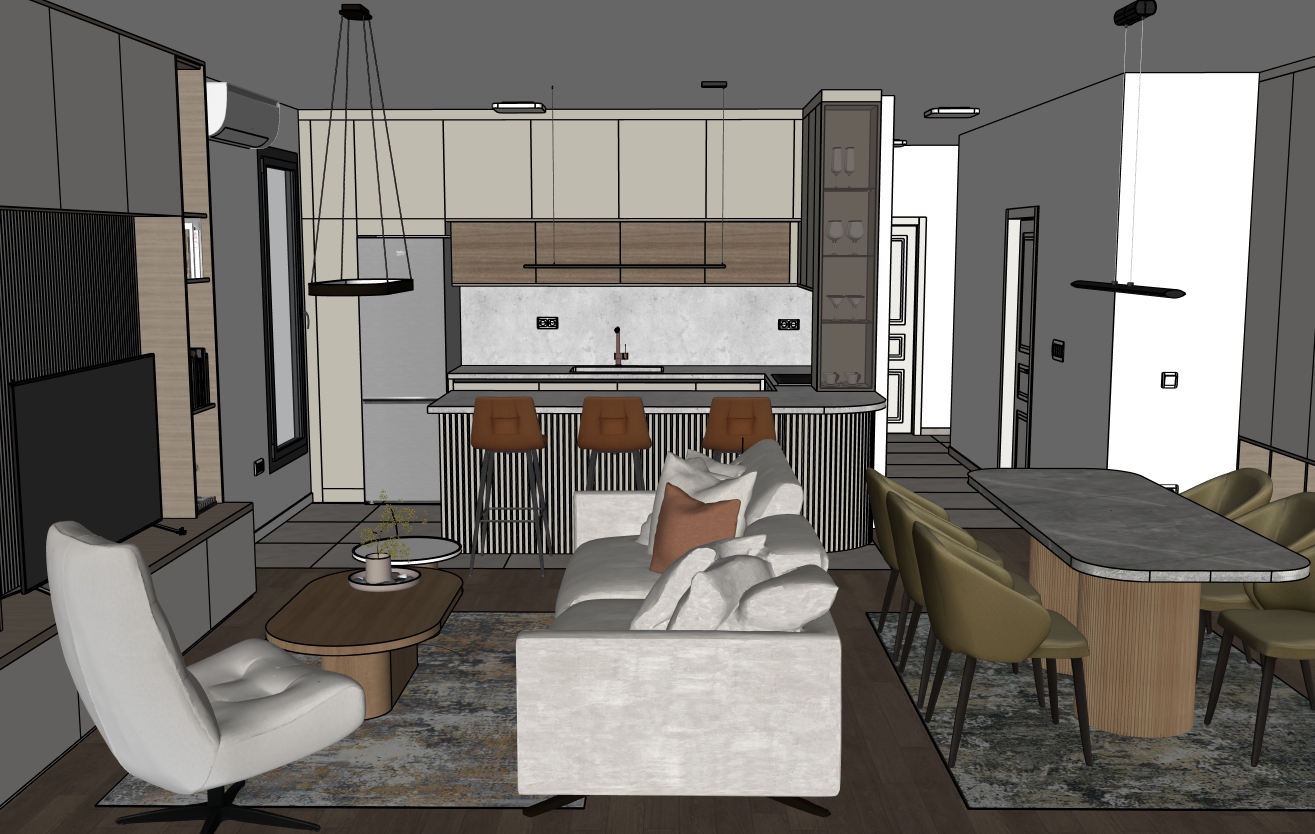 keep all colors textures and shapes don t change anything make photo realistic with natural light light come from camera corner chane color of bar bottom to beige and keep all other molding on the door are beige as door