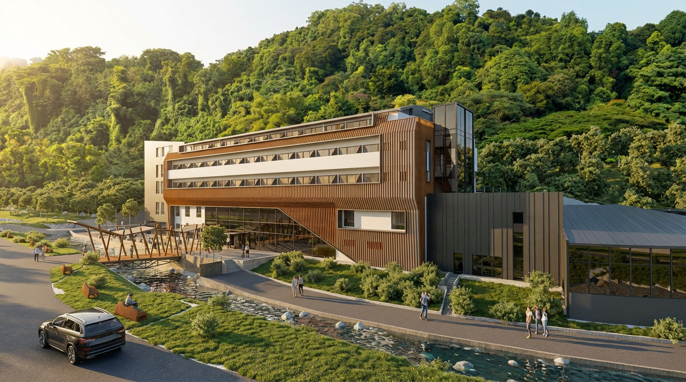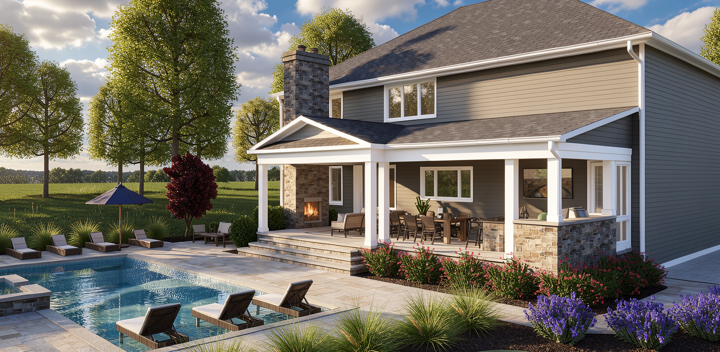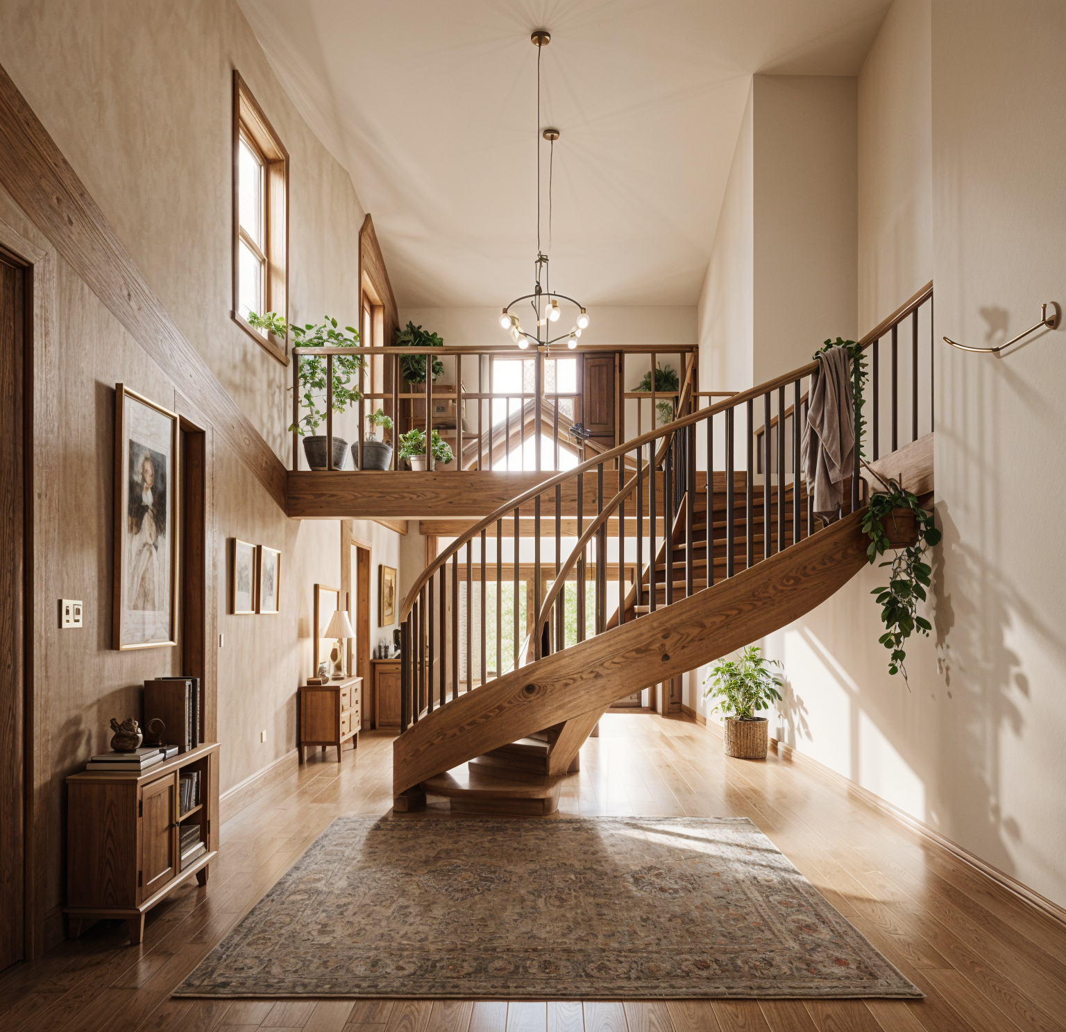 preserve camera composition lighting and all geometry exactly do not change layout proportions materials of existing architecture or light strict object and material edits only wassily chair keep exact geometry replace material with black and white cowhide as in reference short natural fur soft tactile hairy surface clear hair direction visible thickness balanced black white pattern not too fragmented slightly more refined and subtle than rough cowhide armrest straps in smooth black leather frame in highly polished chrome with sharp reflections wood elements doors window frames adjust wood tone to a warm natural medium brown slightly desaturated elegant and soft visible fine grain matte to satin finish not glossy inspired by contemporary timber facade clean calm architectural not orange not yellow coffee table add a round metal side table in front of the sofa positioned close to the front edge of the sofa slightly offset not centered low height minimal cylindrical base with round top brushed stainless steel aluminium finish soft reflections not mirror like no objects on the table important do not add or duplicate any other furniture do not change dining set or kitchen lighting keep original lighting exactly no relighting no color shift no mood change keep everything minimal realistic and architectural