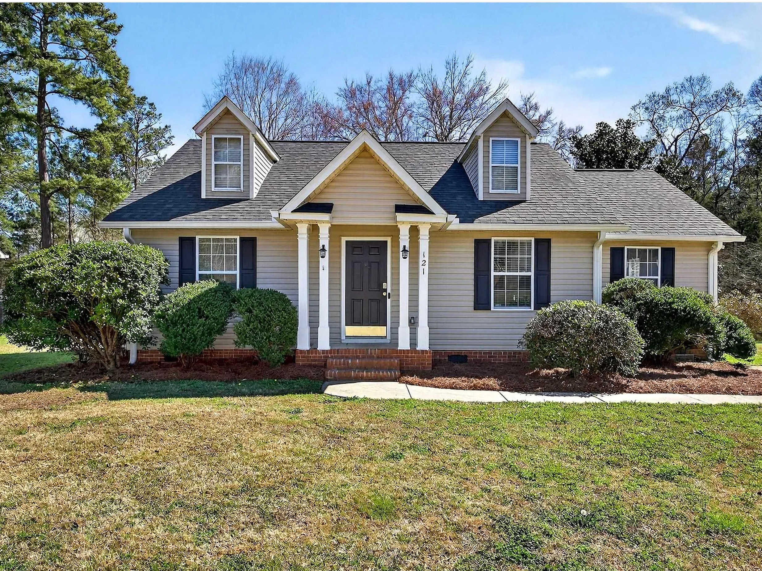 keep the siding color the same replace the existing columns with straight wood columns open the gable over the front door and add a wood beam detail keep the front door a single door but make it a stained wood modern farmhouse style french door paint the shutters a neutral color