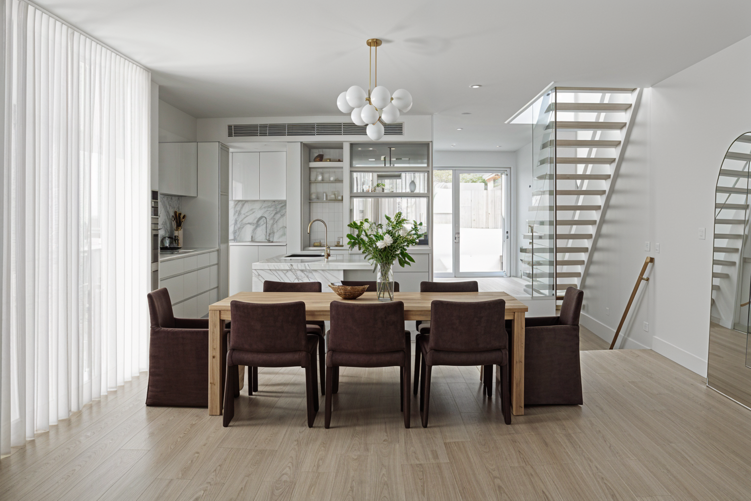 modernist exterior shot wooden legs wire brush finish inspired in weaving design finish architecture