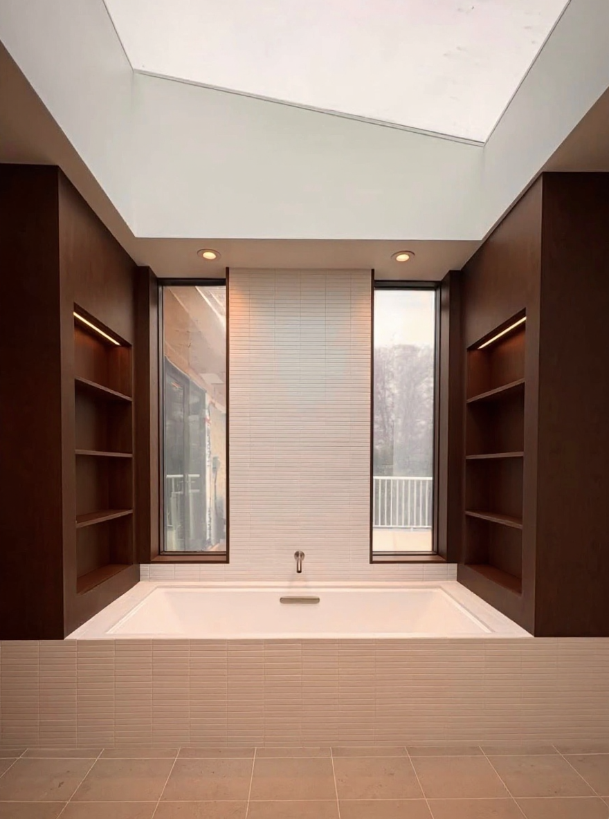 country house artists atelier white walls sandstone floor grass with flowers around