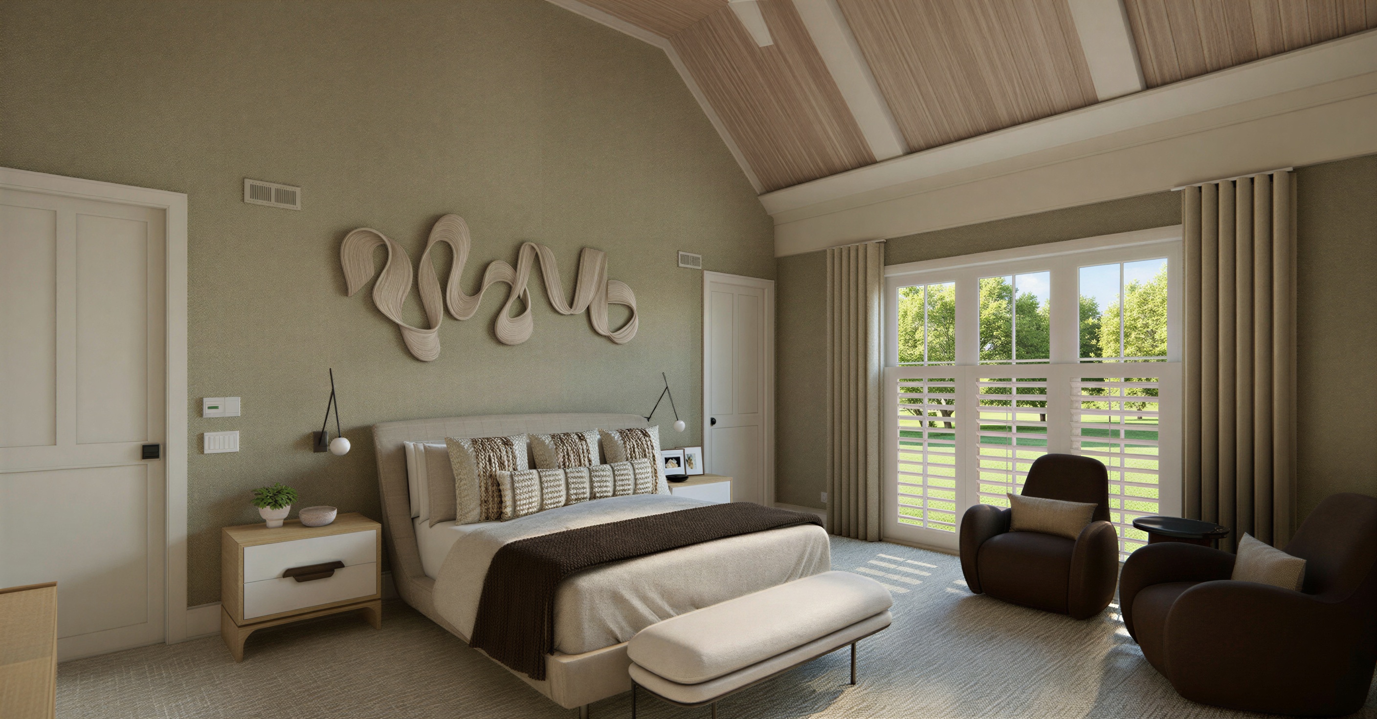 keep everything in the rendering exactly the same but adjust the suede wallpaper color it s currently reading too dark please make it a light beige instead the texture should still look like suede only the color needs to change