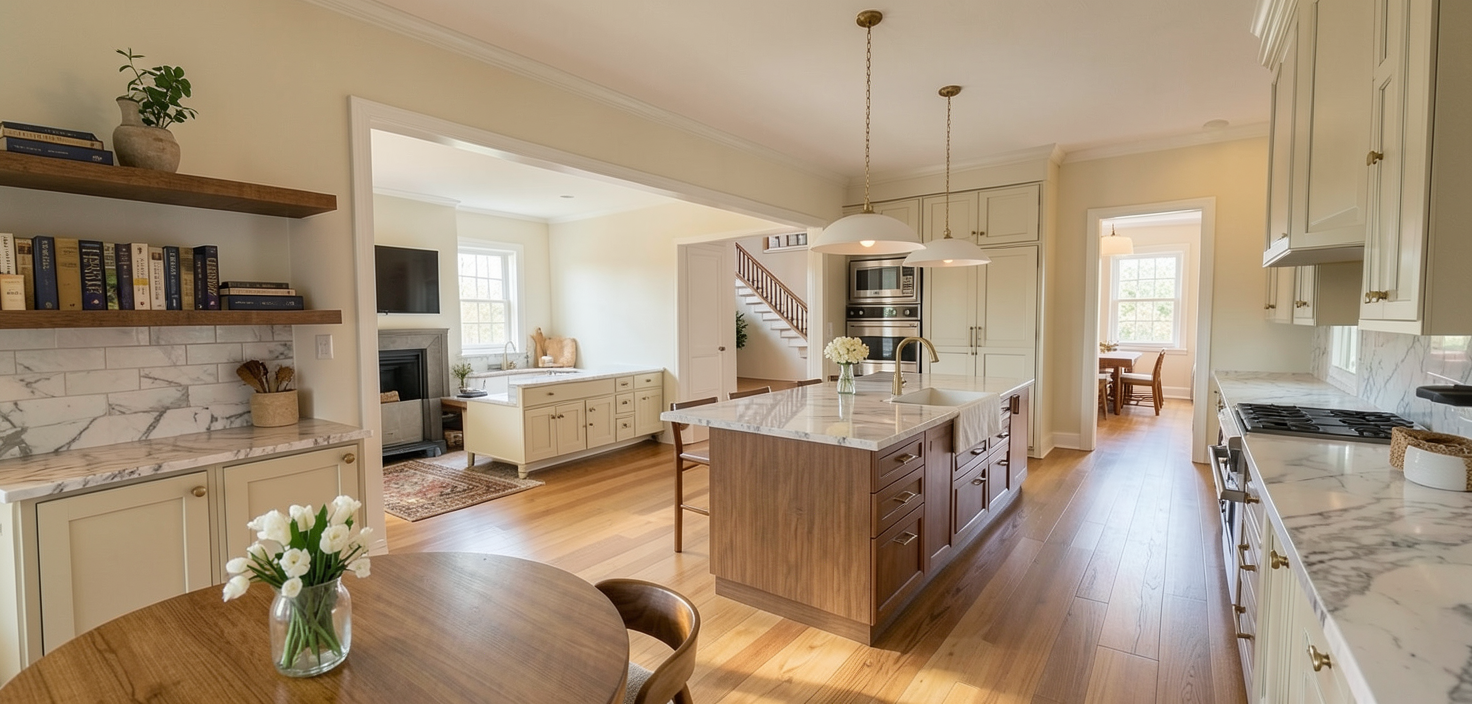 realistic bright farmhouse kitchen