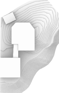 architectural watercolor rendering site plan flat roof grey roof wood color material building structure composed of warm wood black steel and glass volumes