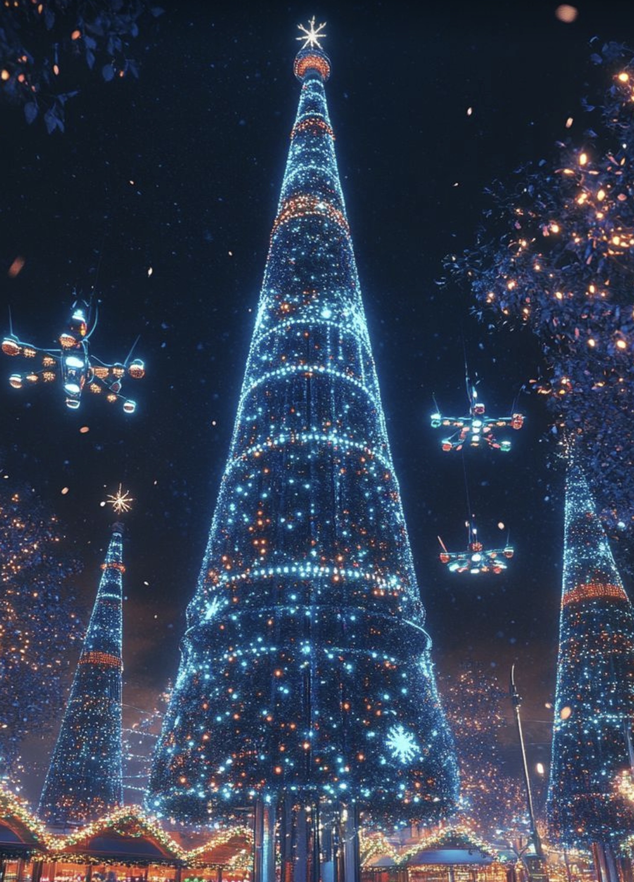 change this christmas tree with red and purple these and add exciting lighting effect such as search light beams lasers flash lights