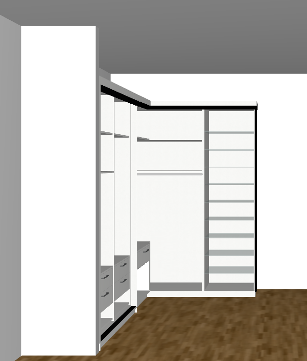 just a 3d render keep colours as it is on the glass shelves add shoes for men add closet decoration