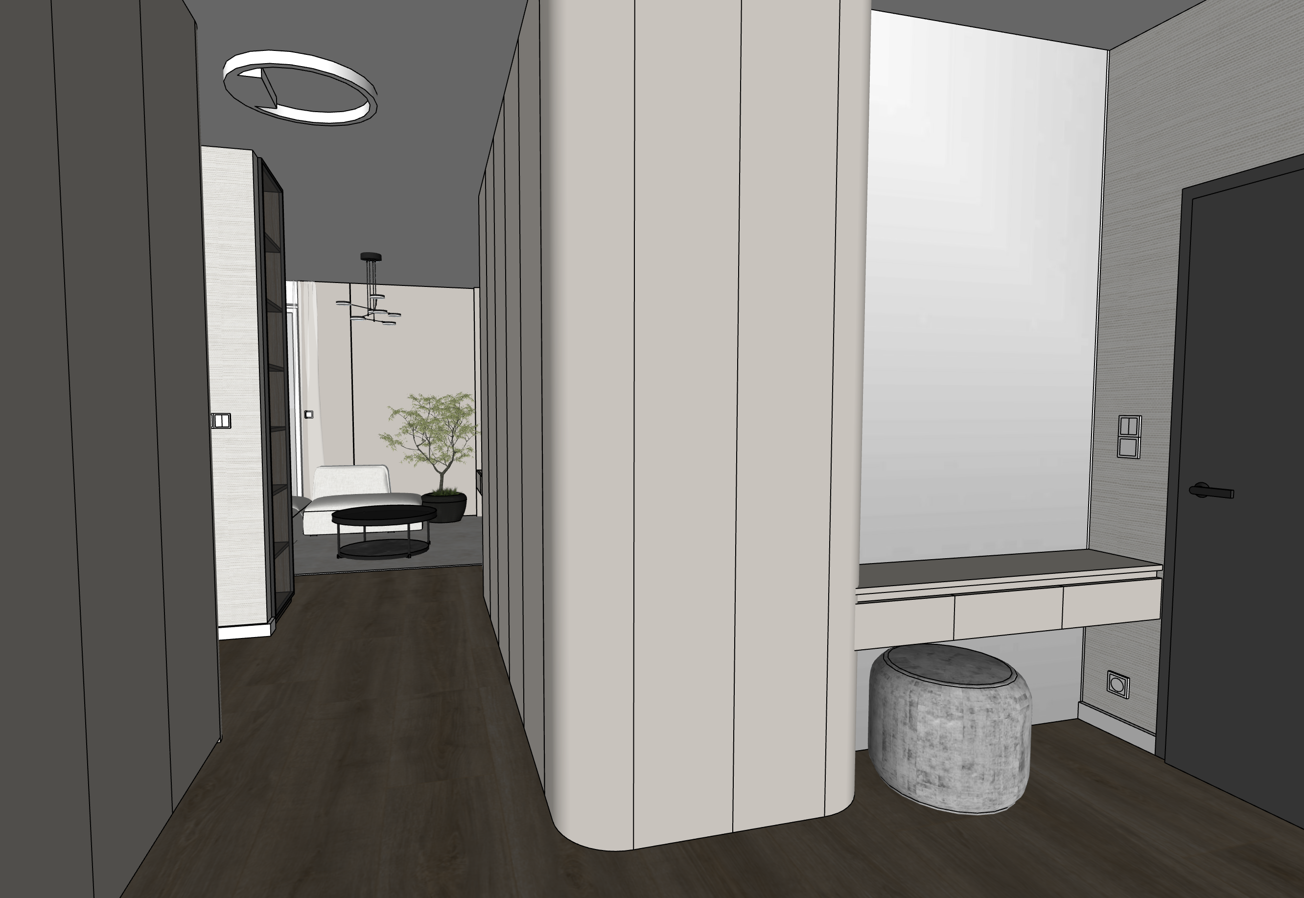 there is a mirror on the right an olive tree all the way in the back the beige material is cashmere mate