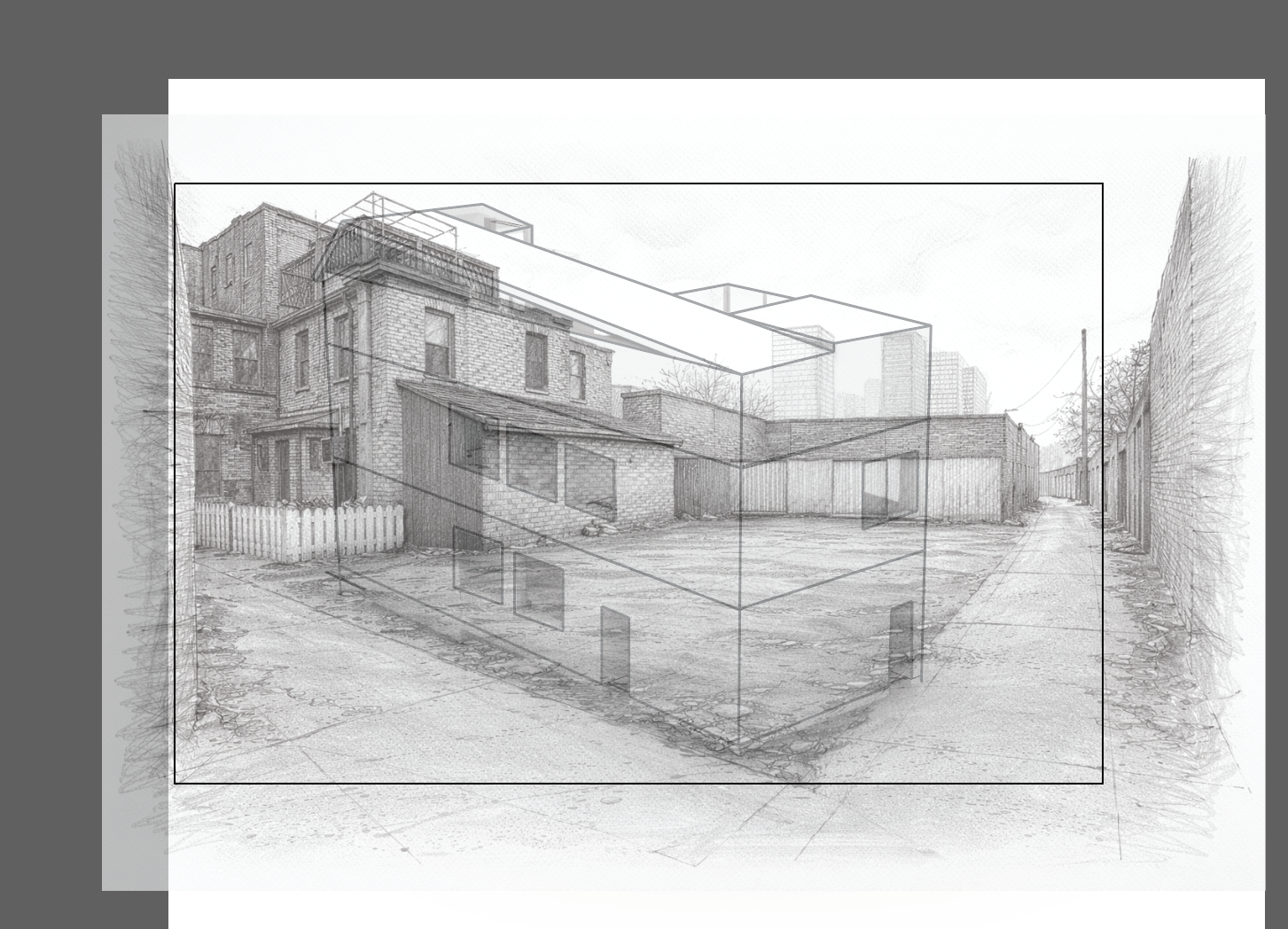 modernist exterior shot put this building in this site and give me a sketch architecture