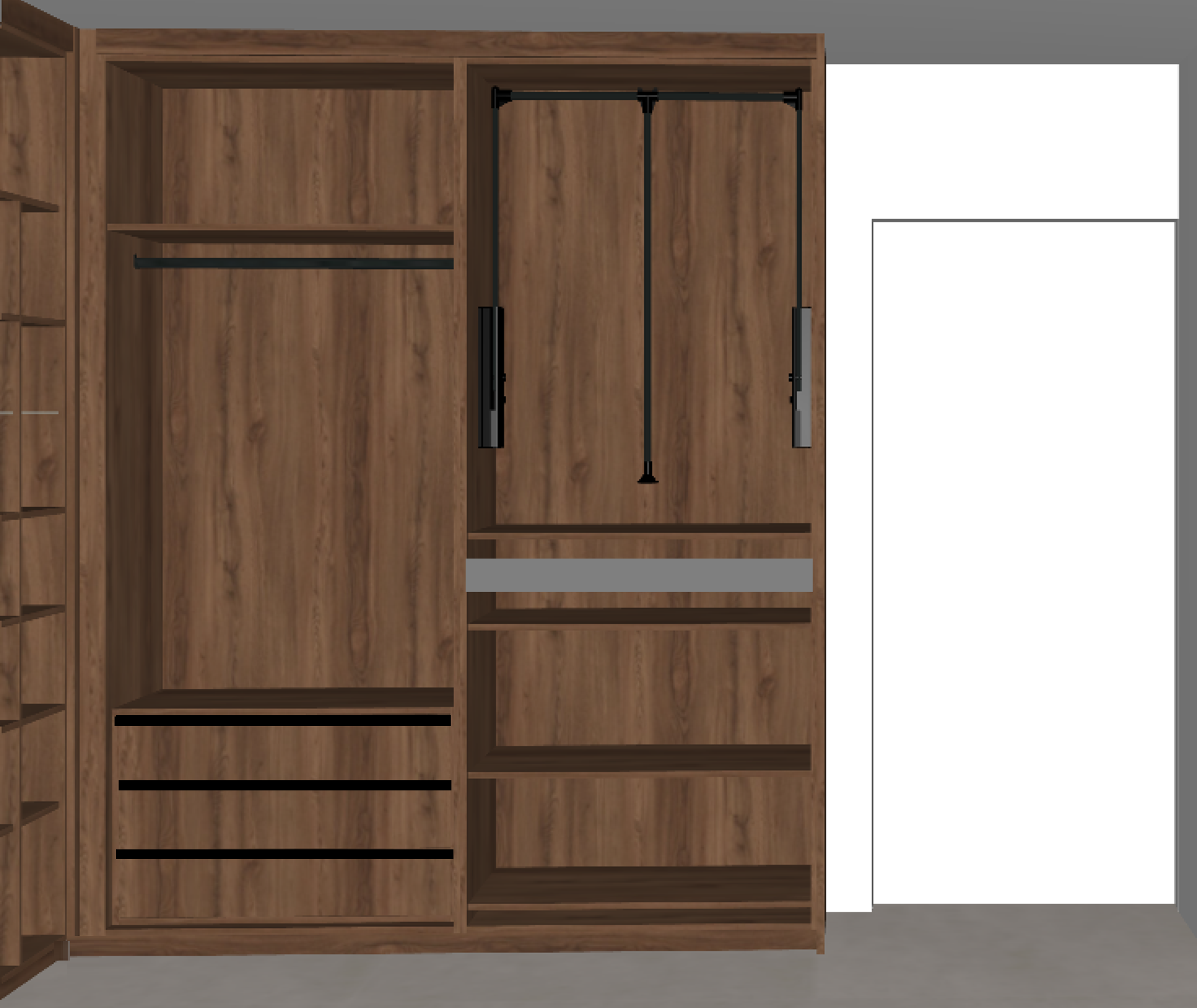 just a 3d render keep colours as it is add some lights add some clothes and on the right shelves add shoes