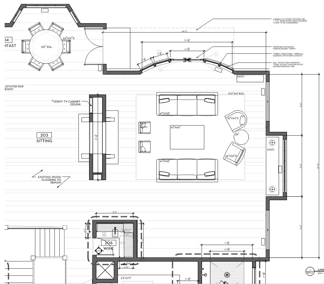 give me a top down rendered version of this 2d floor plan use dark rich wood flooring throughout and soft fabric furniture and rugs keep all of the details and dimensions and callouts exactly the same